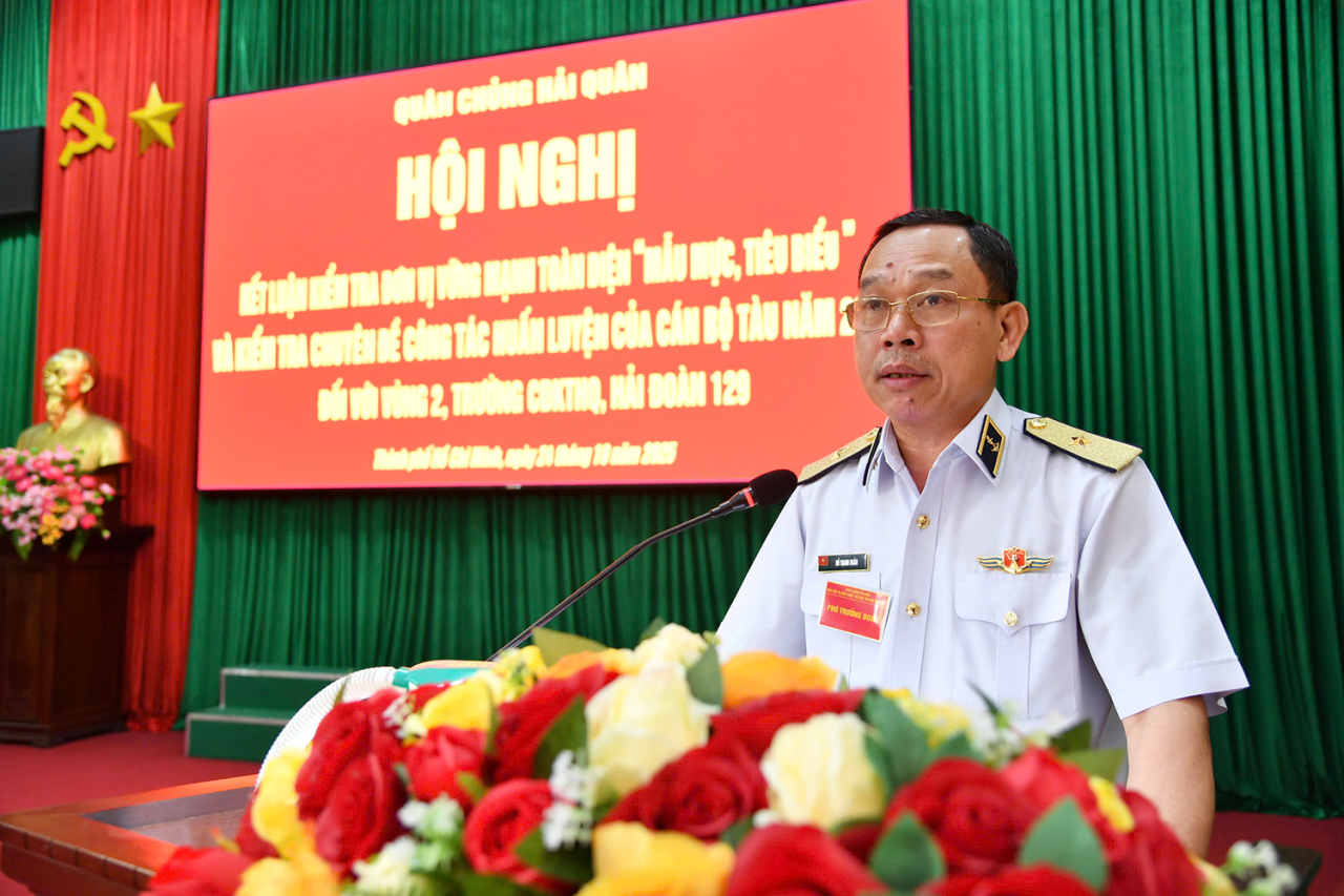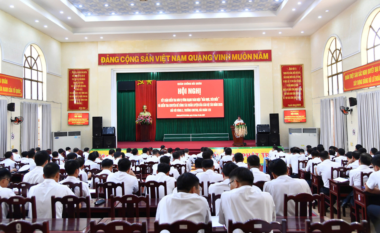 HQ Online - Sau 5 ngày làm việc (từ 20 đến 24/10), đoàn kiểm tra xây dựng đơn vị vững mạnh toàn diện “mẫu mực, tiêu biểu” và chuyên đề công tác huấn luyện cán bộ tàu năm 2025 của Quân chủng Hải quân đã hoàn thành chương trình kiểm tra tại các đơn vị khu vực phía Nam gồm Vùng 2 Hải quân, Hải đoàn 129 và Trường Cao đẳng Kỹ thuật Hải quân. Sáng 24/10, đoàn tổ chức hội nghị kết luận kiểm tra tại Lữ đoàn 125 (Vùng 2). Chuẩn Đô đốc Nguyễn Đình Hùng, Phó Tư lệnh Hải quân dự, chỉ đạo.