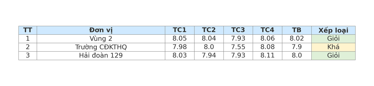 Kết quả kiểm tra các đơn vị theo các tiêu chuẩn (TC):