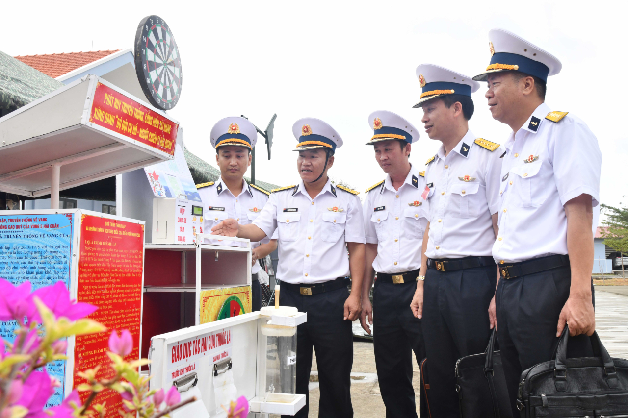 Đại tá Bùi Đình Tiệp (thứ hai từ trái sang) kiểm tra mô hình giáo dục chính trị tại Tiểu đoàn 563