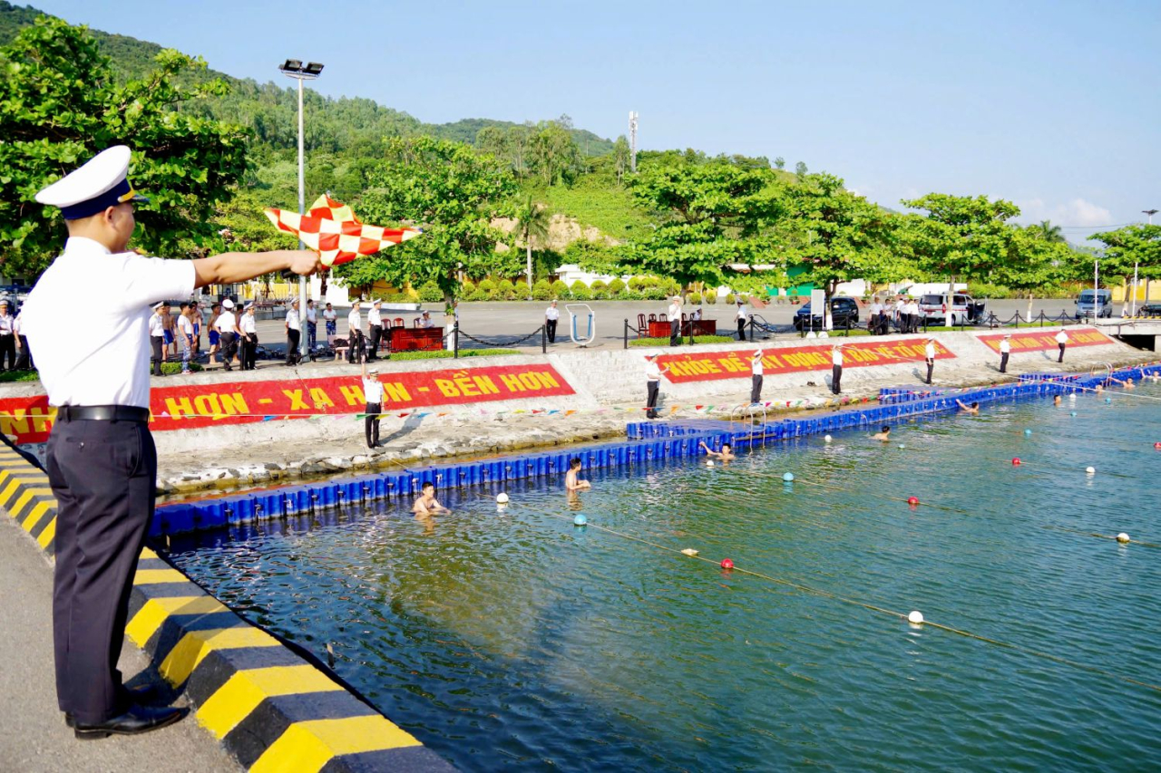 Đoàn kiểm tra huấn luyện điều lệnh đội ngũ và huấn luyện bơi tại Lữ đoàn 172