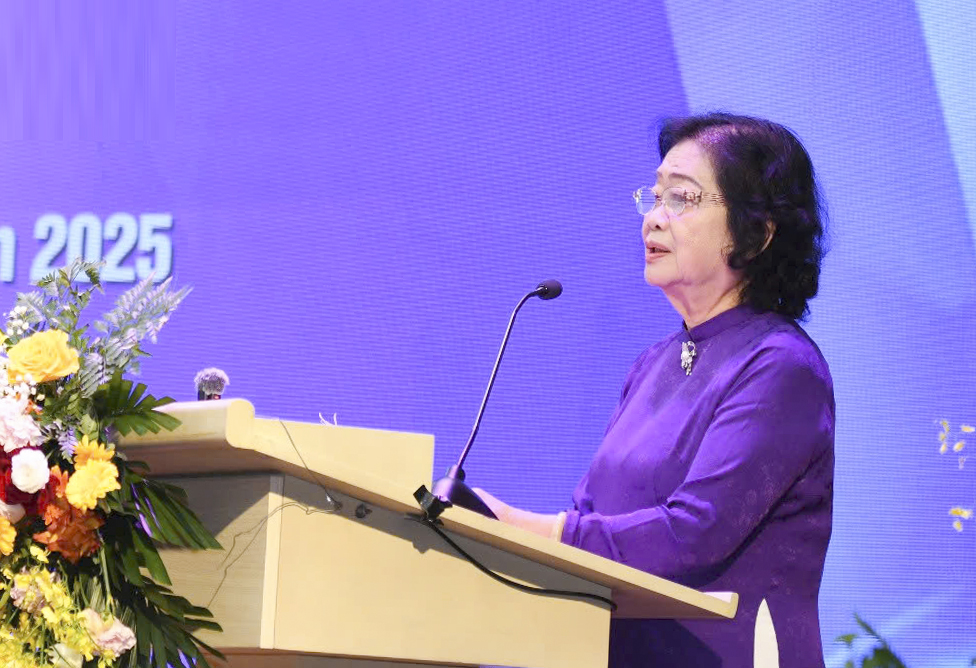 Nguyên Phó Chủ tịch nước Trương Mỹ Hoa, Chủ tịch Quỹ học bổng Vừ A Dính, Chủ nhiệm CLB “Vì Hoàng Sa - Trường Sa thân yêu” phát biểu khai mạc
