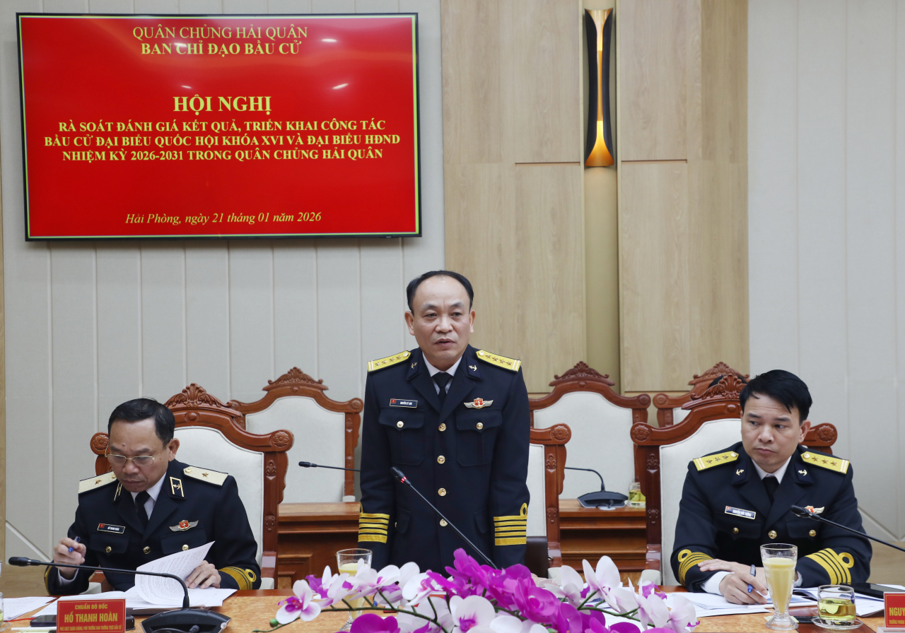 Phát biểu kết luận hội nghị, Chuẩn Đô đốc Đỗ Văn Yên nhận xét: Đến thời điểm hiện nay, Quân chủng đã ban hành đầy đủ các văn bản liên quan đến công tác bầu cử. Để thực hiện tốt nhiệm vụ thời gian tới, cần phân chia nhiệm vụ bầu cử Quốc hội khóa XVI và HĐND các cấp nhiệm kỳ 2026-2031 thành 3 giai đoạn, chuẩn bị bầu cử, bầu cử và sau khi bầu cử.
