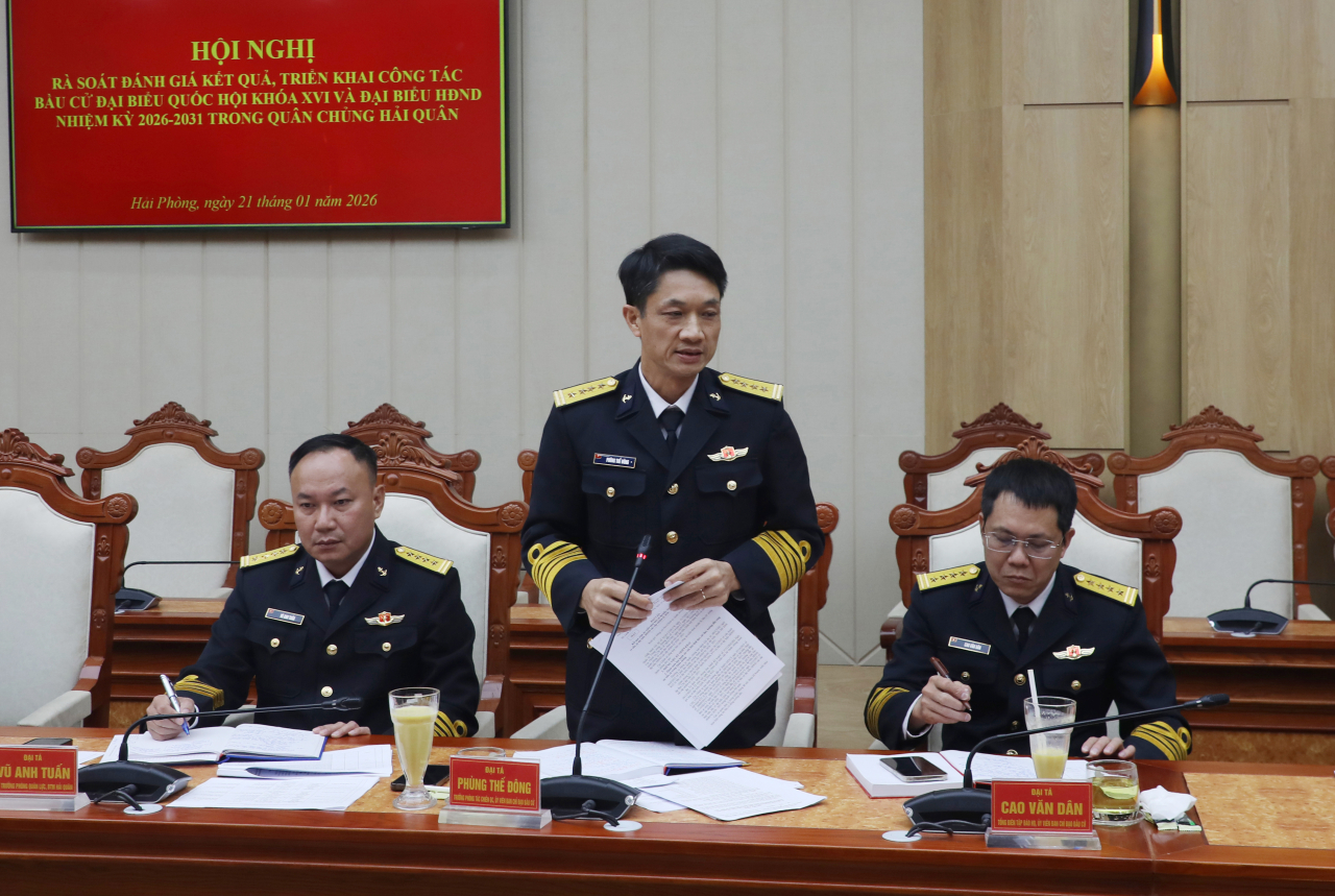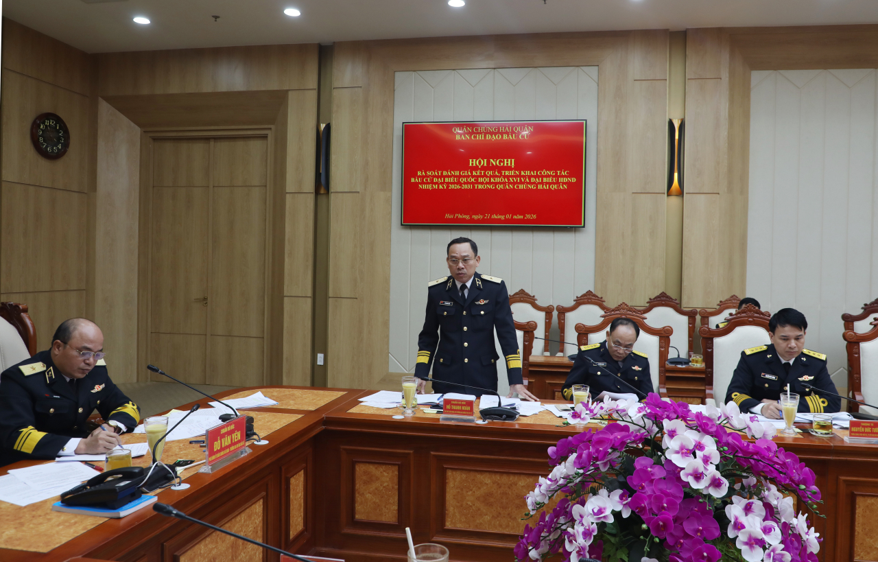 HQ Online - Chiều 21/1, tại Hải Phòng, Quân chủng Hải quân tổ chức hội nghị rà soát đánh giá kết quả triển khai công tác bầu cử đại biểu Quốc hội khoá XVI và đại biểu Hội đồng nhân dân các cấp (HĐND) nhiệm kỳ 2026-2031. Chuẩn Đô đốc Đỗ Văn Yên, Phó Chính ủy Hải quân, Trưởng ban Chỉ đạo bầu cử chủ trì hội nghị.