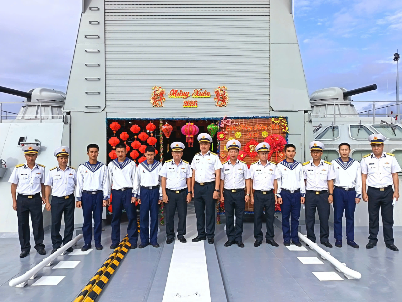 HQ Online - Trong chuỗi các hoạt động vui xuân đón tết, sáng 15/2, tại Quân cảng Cam Ranh, tỉnh Khánh Hòa, Lữ đoàn 162, Vùng 4 Hải quân tổ chức Hội thi trang trí phòng đón xuân, bình báo tường và câu đối tết chào Xuân Bính Ngọ 2026. Đại tá Mai Văn Doanh, Chính ủy Lữ đoàn và Thượng tá Trần Văn Vương, Lữ đoàn trưởng dự và chỉ đạo Hội thi.