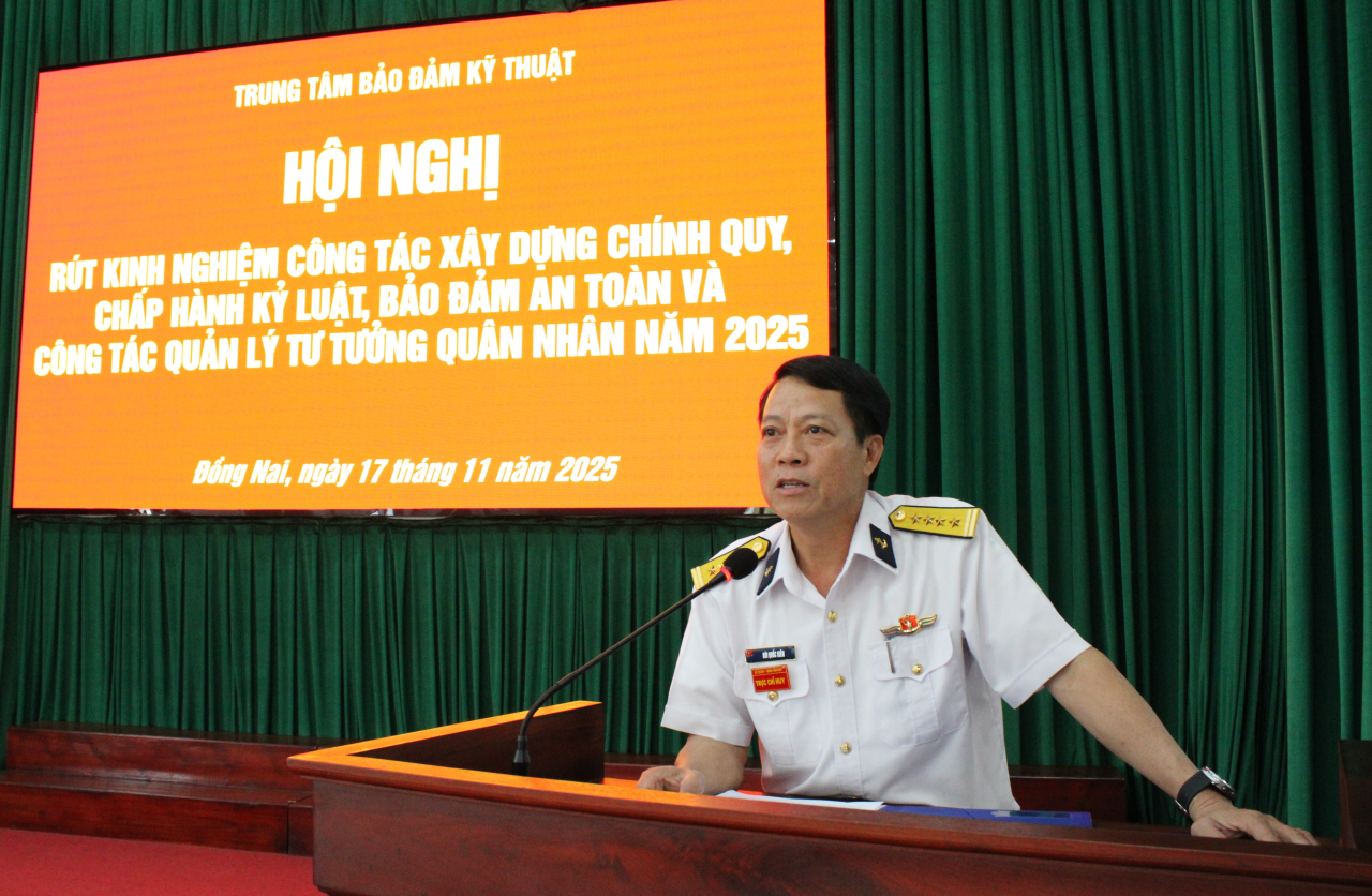 HQ Online - Ngày 17/11, tại xã Nhơn Trạch, tỉnh Đồng Nai, Trung tâm Bảo đảm kỹ thuật Vùng 2 Hải quân tổ chức Hội nghị rút kinh nghiệm công tác xây dựng chính quy, chấp hành kỷ luật, bảo đảm an toàn và quản lý tư tưởng quân nhân năm 2025.
