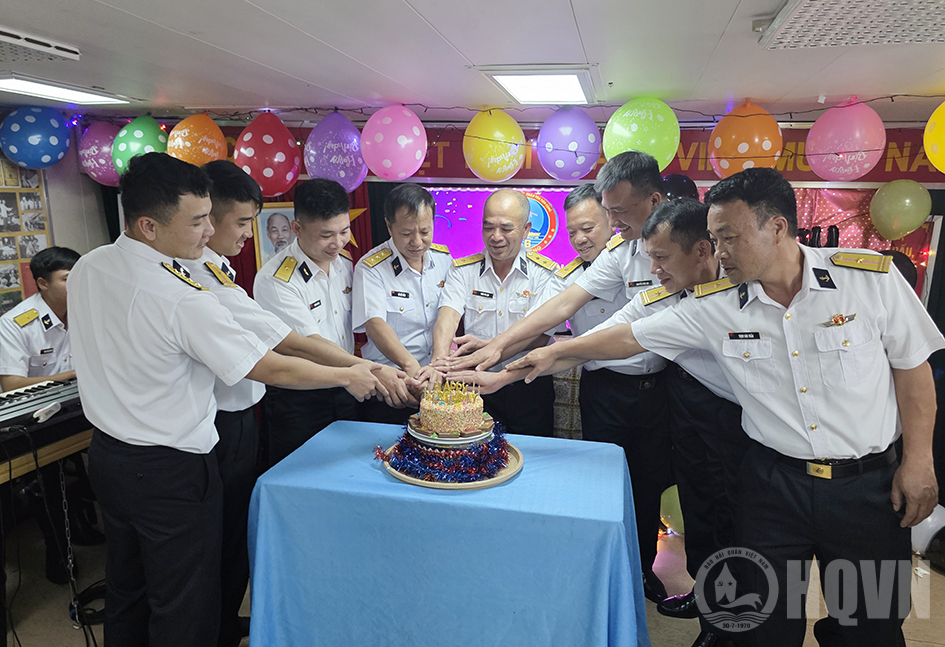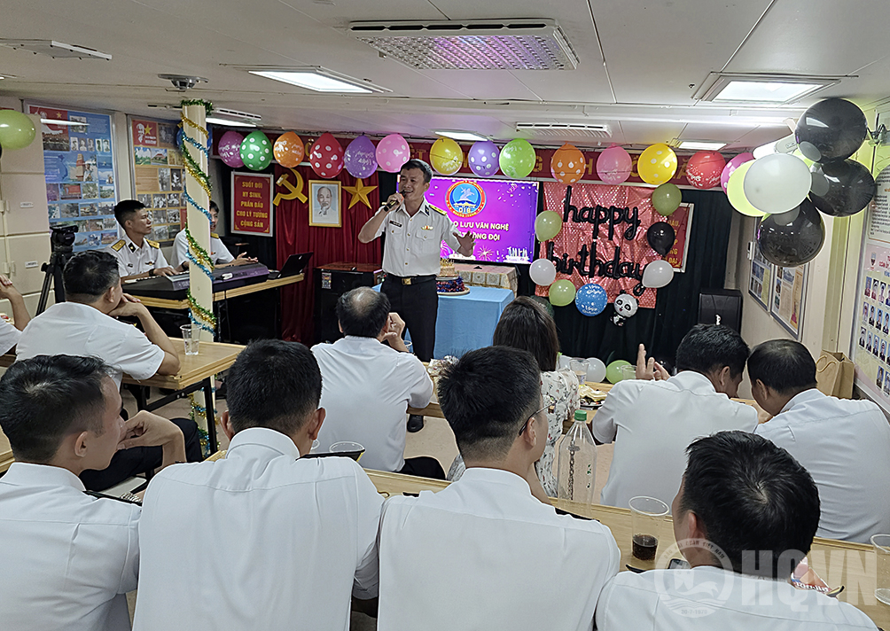 Dịp này, Chi đoàn 016-Quang Trung đã tổ chức sinh nhật đồng đội cho 11 sĩ quan, quân nhân chuyên nghiệp, đoàn viên thuộc kíp tàu và thành viên đoàn công tác sinh nhật trong tháng 3 và tháng 4.