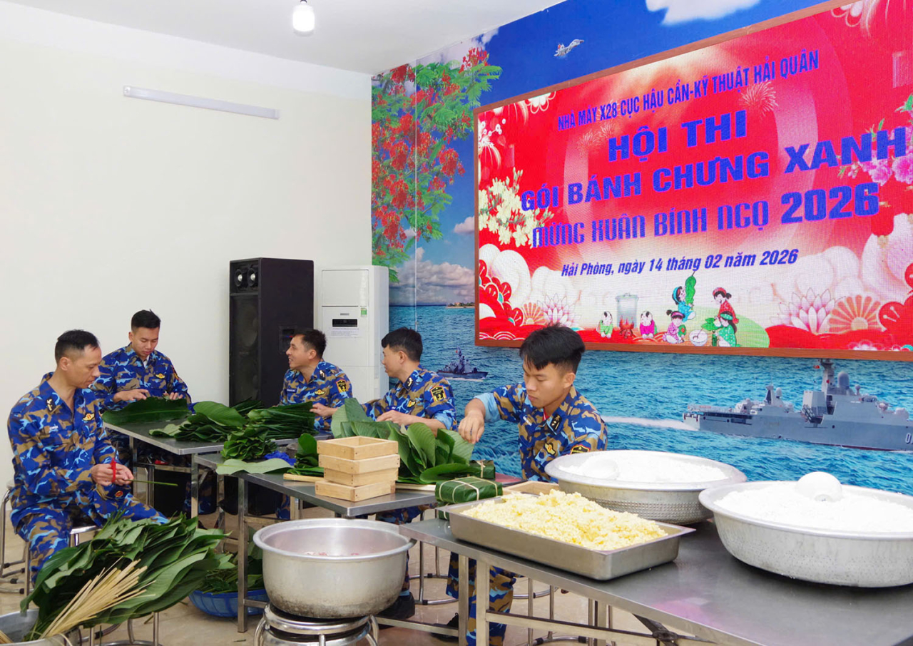 *Sáng cùng ngày, Nhà máy X28, Cục Hậu cần – Kỹ thuật Hải quân đã tổ chức Hội thi gói bánh chưng xanh mừng Xuân Bính Ngọ 2026.