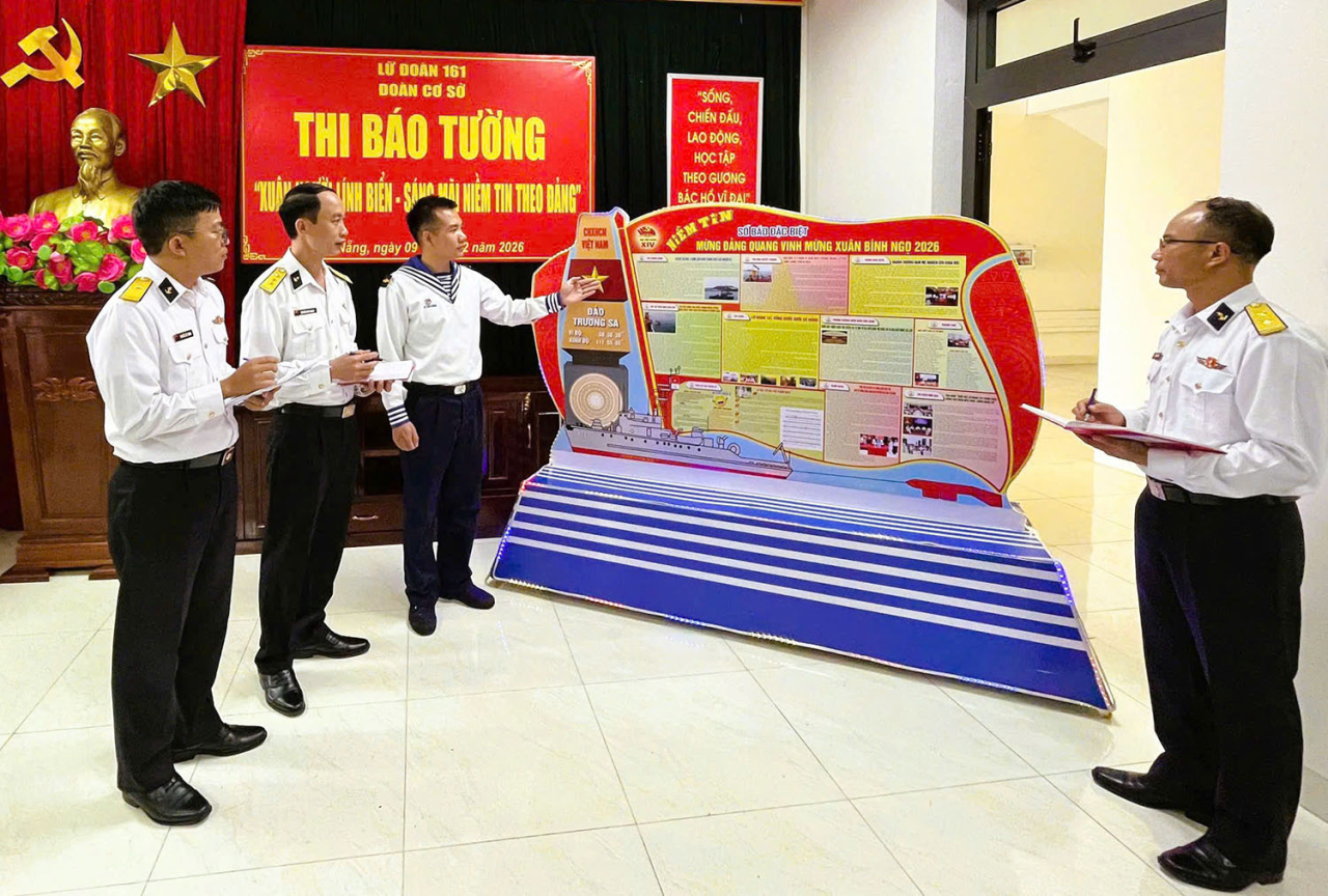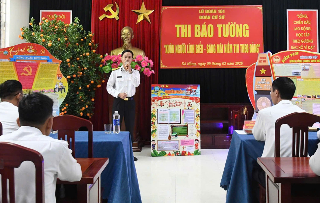 HQ Online - Ngày 9/2, tại TP. Đà Nẵng, Lữ đoàn 161, Vùng 3 Hải quân tổ chức Hội thi mô hình báo tường chào mừng thành công Đại hội đại biểu toàn quốc lần thứ XIV của Đảng và mừng xuân Bính Ngọ 2026. Thượng tá Nguyễn Duy Khanh, Chủ nhiệm Chính trị Lữ đoàn chủ trì.