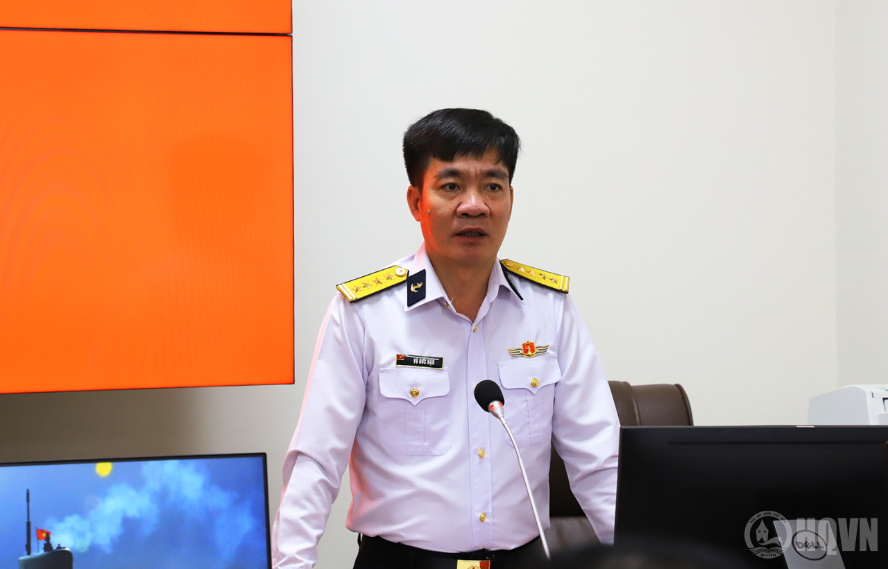 Đại tá Vũ Đức Hậu, Trưởng phòng Cán bộ, Cục Chính trị Hải quân phát biểu khai mạc tập huấn