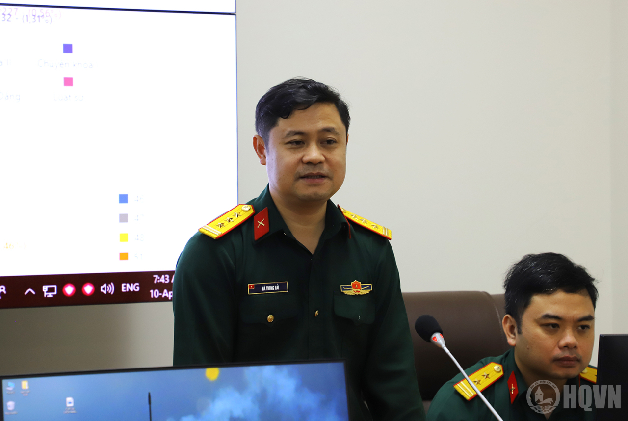 Cán bộ Viện Công nghệ thông tin-Điện tử thuộc Viện Khoa học và Công nghệ quân sự hướng dẫn cách khai thác sử dụng phần mềm