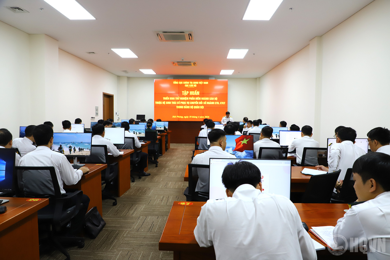 HQ Online - Sáng 10/4 tại Hải Phòng, Cục Cán bộ phối hợp với Viện Công nghệ thông tin-Điện tử (Viện Khoa học-Công nghệ quân sự), Quân chủng Hải quân và Binh đoàn 19 tổ chức tập huấn triển khai thử nghiệm phần mềm ngành cán bộ thuộc hệ sinh thái số phục vụ chuyển đổi số ngành công tác đảng, công tác chính trị (CTĐ CTCT) trong Đảng bộ Quân đội.