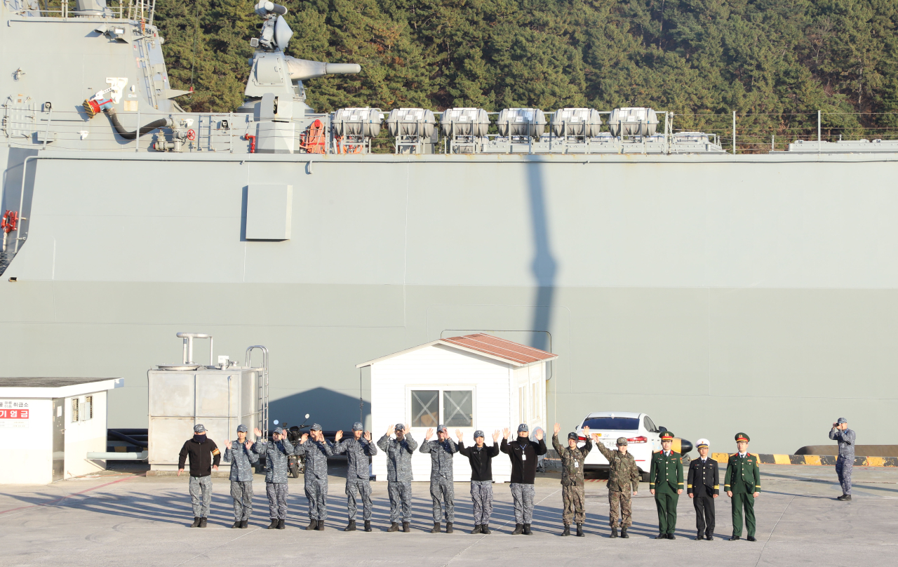 Các sĩ quan Hải quân Hàn Quốc cùng cán bộ Phòng Tùy viên Quốc phòng Việt Nam tại Hàn Quốc tiễn Tàu 015