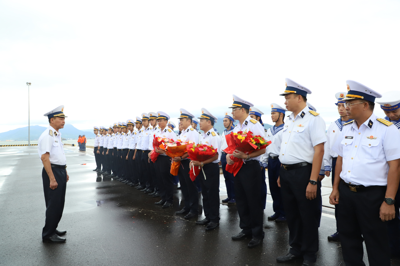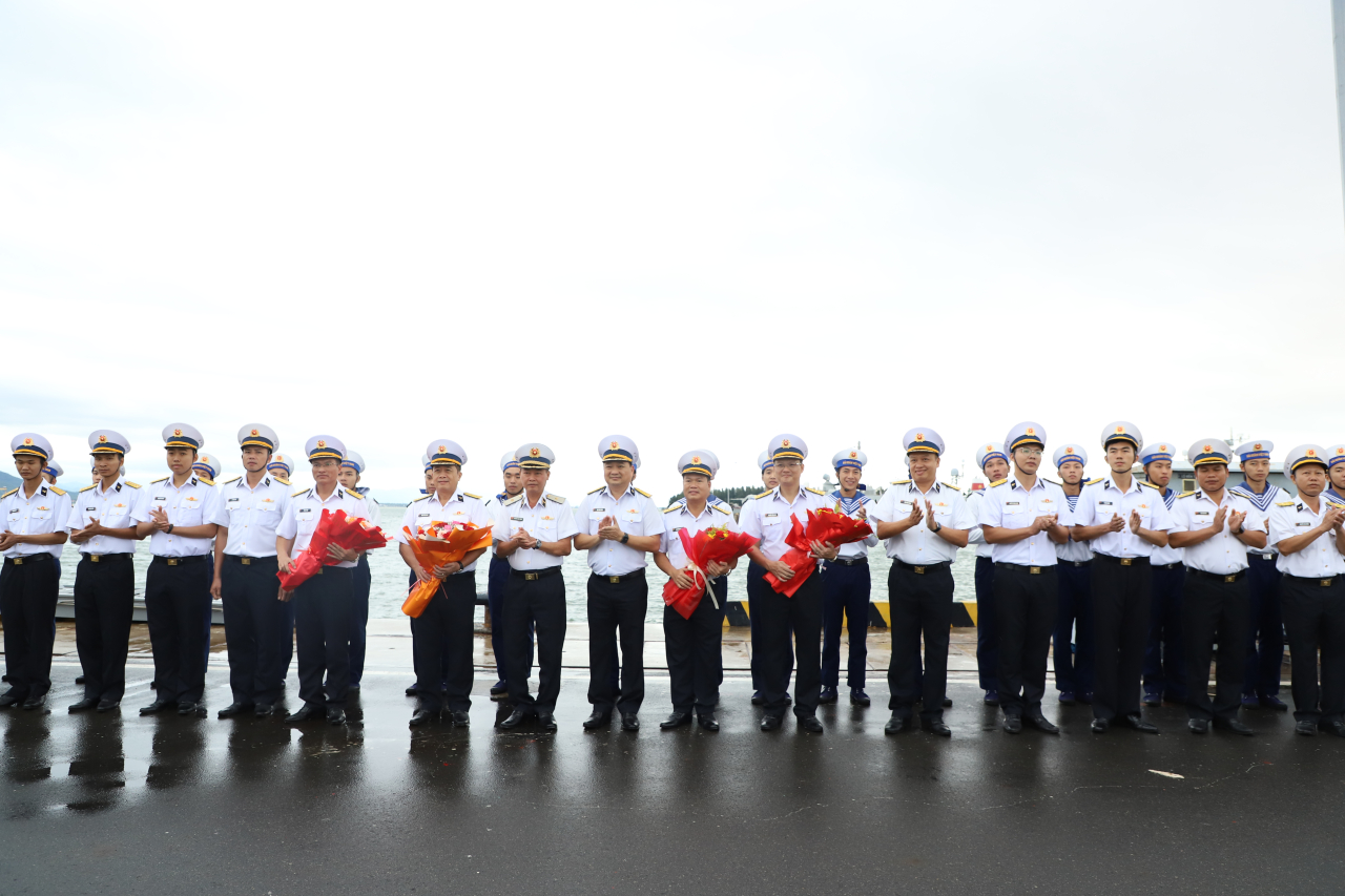 Chuẩn đô đốc Nguyễn Anh Tuấn, Tư lệnh Vùng 4 Hải quân; Thượng tá Bùi Xuân Bình, Chính ủy Vùng 4 và cán bộ, chiến sĩ Lữ đoàn 162 ra cầu cảng tiễn đoàn.