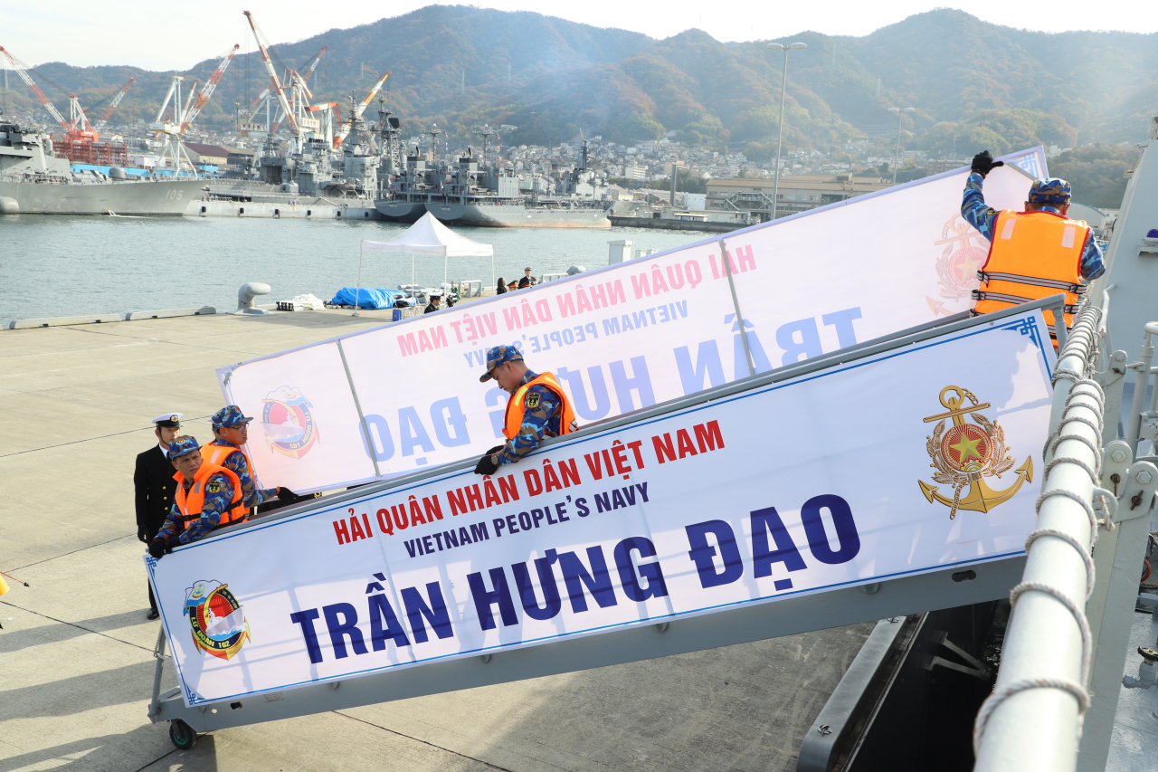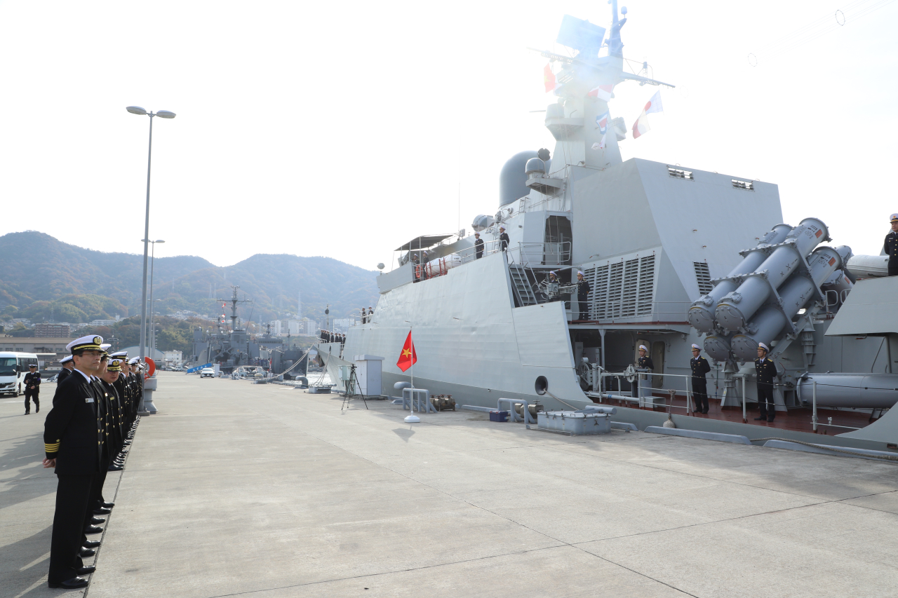 HQ Online - Sau 4 ngày thăm xã giao tại Nhật Bản, sáng 10/12, Tàu 015 - Trần Hưng Đạo cùng đoàn công tác Hải quân nhân dân Việt Nam đã rời cảng Kure, tỉnh Hiroshima (Nhật Bản), bắt đầu hành trình đi thăm xã giao Hàn Quốc.