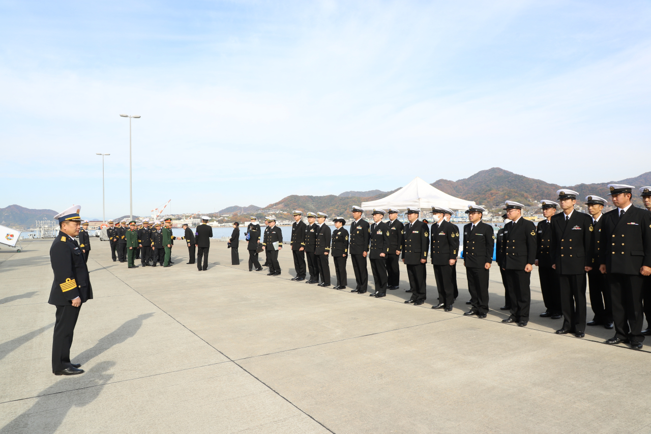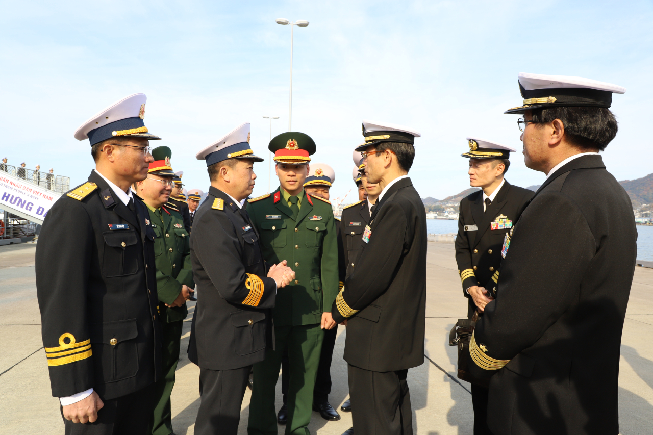 Đại tá Nguyễn Vĩnh Nam, Phó Tư lệnh Vùng 4 Hải quân, Trưởng đoàn công tác chào và cảm ơn các sĩ quan, thủy thủ của Lực lượng Phòng vệ trên biển Nhật Bản