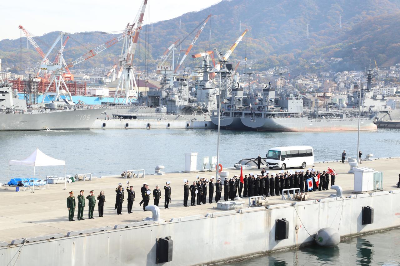 Quang cảnh buổi tiễn đoàn tại cầu cảng Căn cứ Hải quân Kure