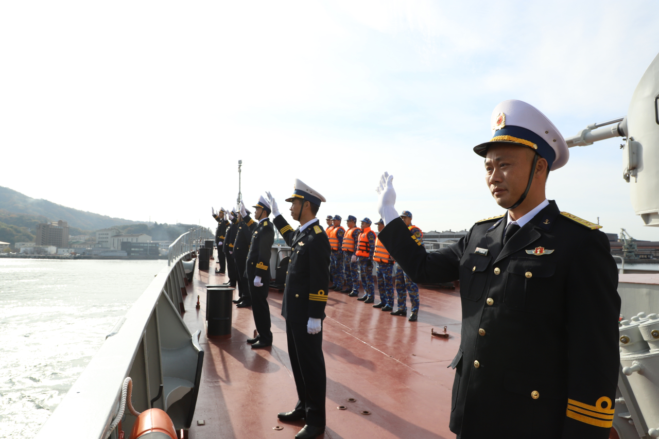 Đoàn công tác và cán bộ, thủy thủ Tàu 015 chào tạm biệt cảng Kure