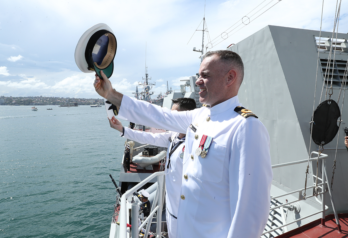 HQ Online - Đúng 14 giờ ngày 21/3 giờ địa phương, Lễ duyệt binh tàu Hải quân quốc tế kỷ niệm 125 năm Ngày thành lập Hải quân Hoàng gia Australia đã diễn ra trọng thể tại vịnh Sydney, bang New South Wales, Australia. Chuẩn Đô đốc Nguyễn Đình Hùng, Phó Tư lệnh Hải quân Việt Nam tham gia Lễ duyệt binh trên Tàu 245-HMAS Leeuwin cùng Toàn quyền Australia Sam Mustin và đại diện Hải quân các nước.