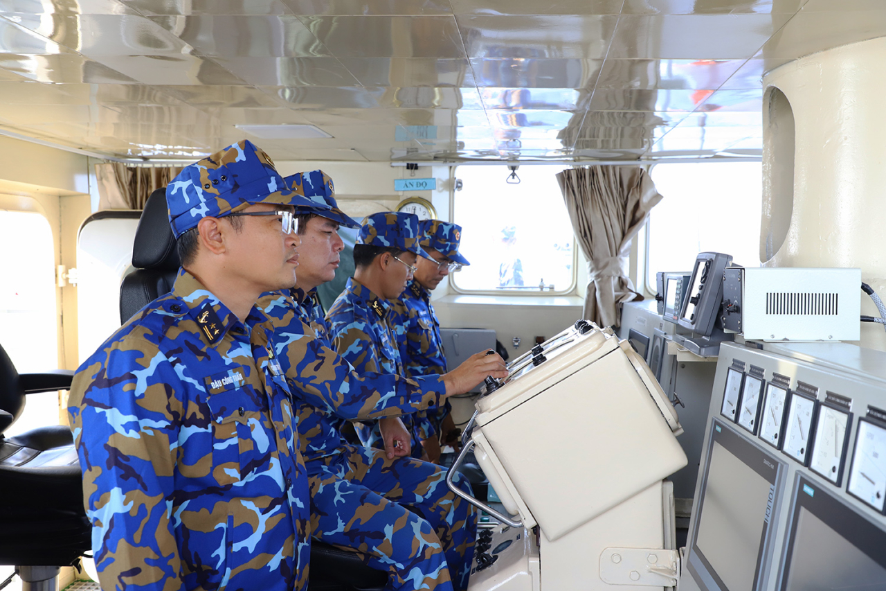 Cán bộ, chiến sĩ Tàu 17 đưa tàu vào vị trí neo theo kế hoạch