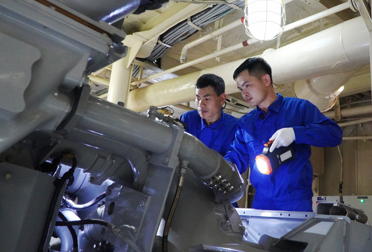 Cán bộ, nhân viên ngành cơ điện bảo quản, bảo dưỡng trang bị kỹ thuật sẵn sàng cho Lễ duyệt binh tàu quốc tế