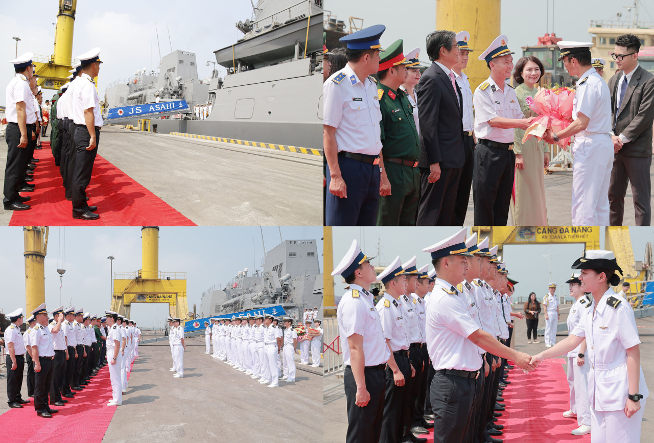 HQ Online - Sáng 2/4, tàu hộ vệ Asahi thuộc Lực lượng Tự vệ trên biển Nhật Bản do Đại tá Jio Takemasa, Chỉ huy Đội tàu hộ vệ số 2 làm trưởng đoàn cùng 220 thủy thủ, thuyền viên đã cập cảng Tiên Sa thăm TP. Đà Nẵng từ ngày 2 đến 5/4.