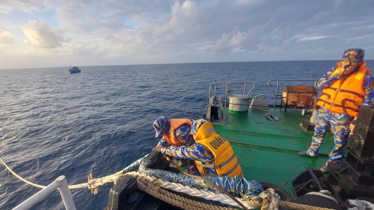 Với tinh thần trách nhiệm cao, cán bộ, chiến sĩ Tàu Trường Sa 10 đã tổ chức tiếp cận an toàn, tiến hành hỗ trợ kỹ thuật và triển khai phương án cứu kéo tàu cá trong điều kiện thời tiết xấu.