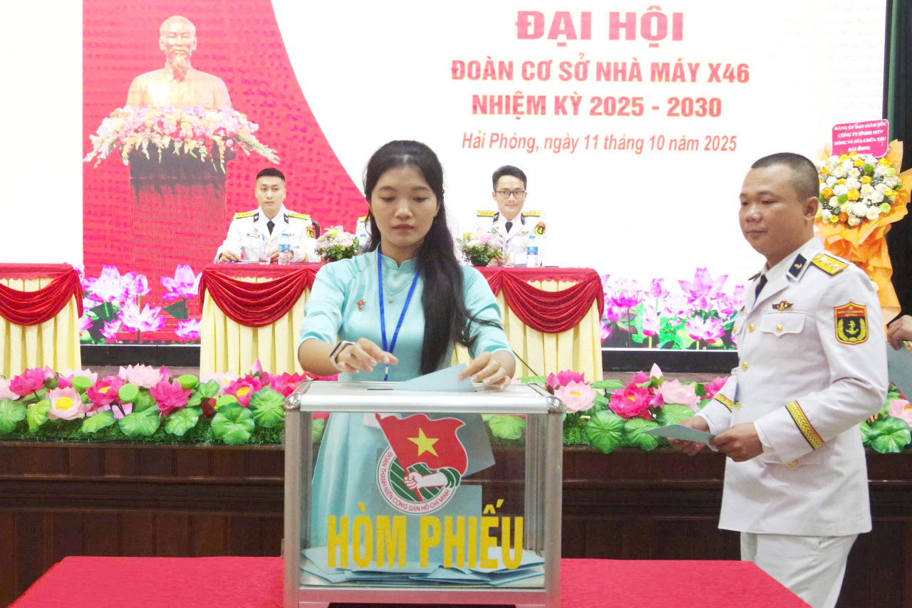 HQ Online - Ngày 11/10, tại Hải Phòng, Đoàn cơ sở Nhà máy X46 (Cục Hậu cần - Kỹ thuật Hải quân) tổ chức thành công Đại hội nhiệm kỳ 2025 - 2030. Thượng tá Phạm Văn Trà, Bí thư Đảng ủy, Chính uỷ Nhà máy dự và chỉ đạo.