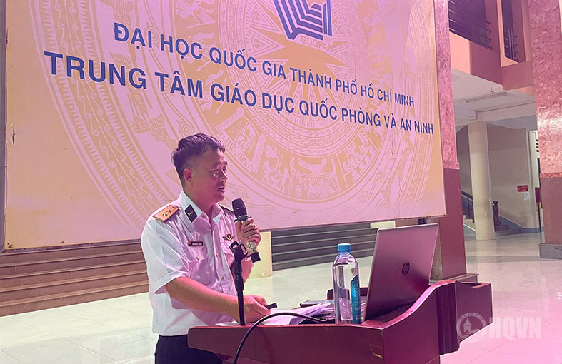 Với cách truyền đạt sinh động, gần gũi, Trung tá Huỳnh Chí Cường, Báo cáo viên của Lữ đoàn 125 đã cung cấp cho sinh viên những nội dung cốt lõi về: vị trí, vai trò chiến lược của biển đảo Việt Nam; tình hình trên các vùng biển hiện nay; truyền thống anh hùng của Quân chủng Hải quân và những chiến công tiêu biểu của Lữ đoàn 125 - đơn vị hai lần Anh hùng Lực lượng vũ trang nhân dân.