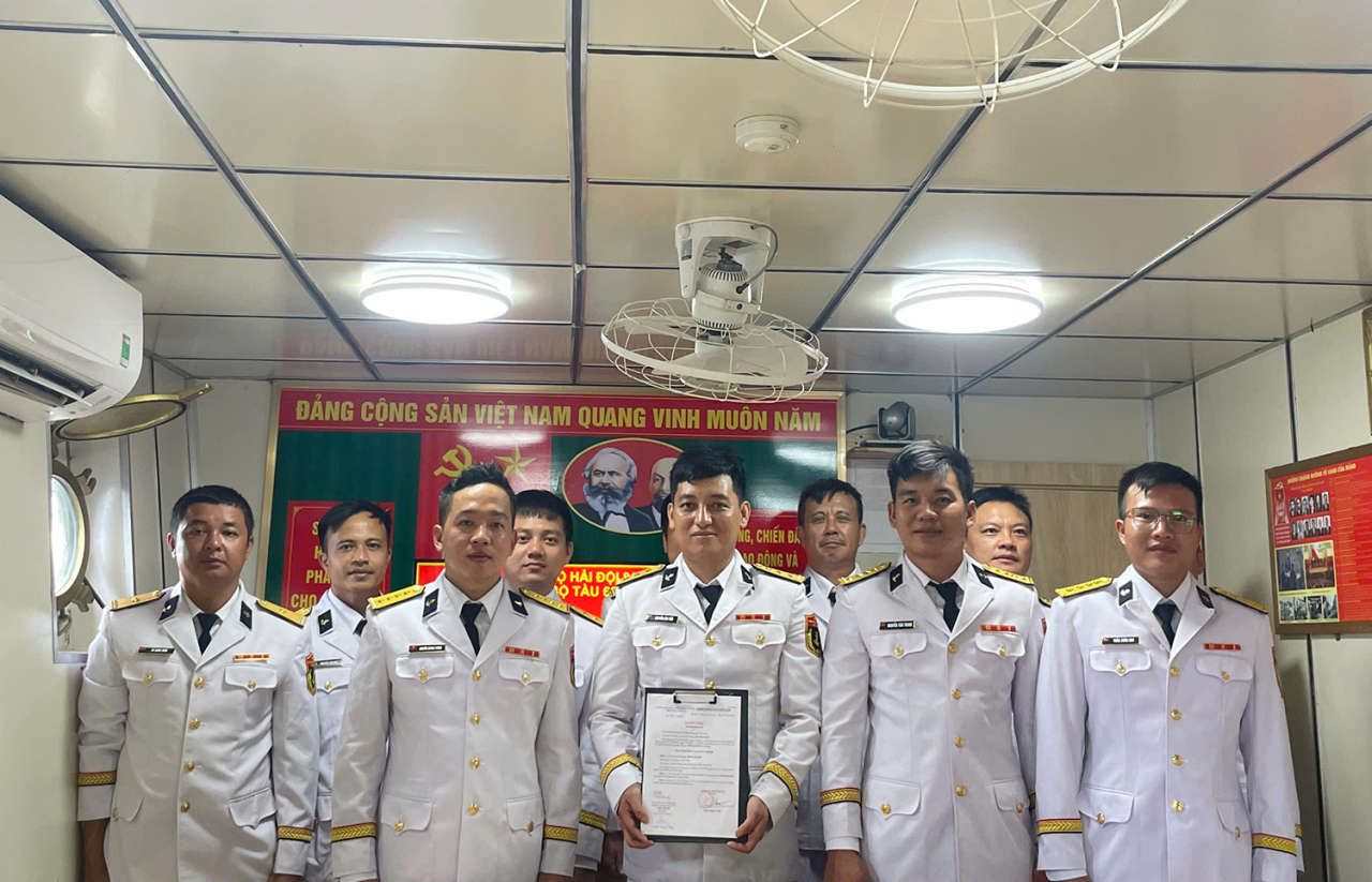 Một trong những hoạt động ý nghĩa được tổ chức đúng ngày 22/12 năm nay là Chi bộ Tàu 609 tổ chức lễ kết nạp đảng viên mới. Mặc dù thời tiết trên biển những ngày này, sóng to, gió lớn, nhưng buổi lễ vẫn được tổ chức một cách nghiêm trang, đầy đủ quy trình, đúng theo quy định, tạo không khí hết sức ý nghĩa, vinh dự tự hào đối với mọi cán bộ, đảng viên, nhất là đối với quần chúng Nguyễn Văn Tiến.