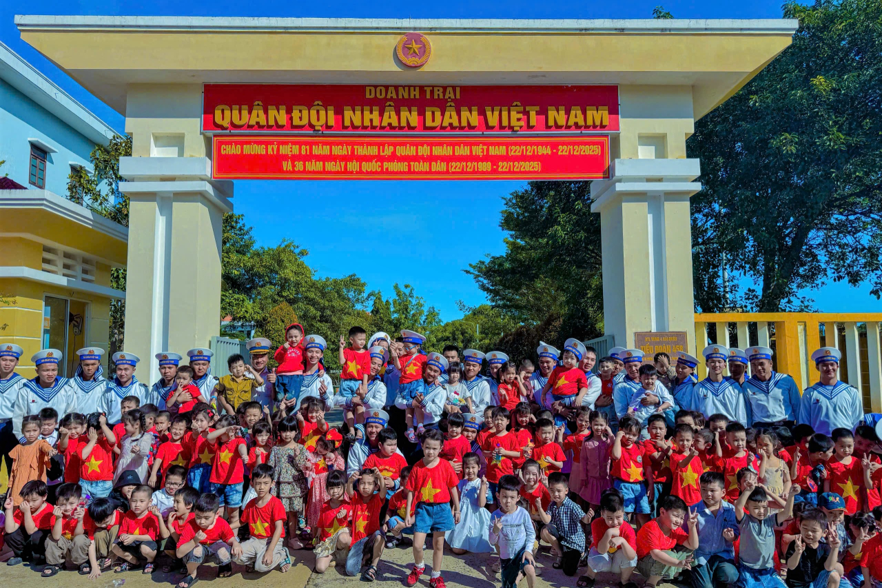 HQ Online - Nhân kỷ niệm 81 năm Ngày thành lập Quân đội nhân dân Việt Nam (22/12/1944 - 22/12/2025), sáng 19/12, Tiểu đoàn 458, Vùng 4 Hải quân phối hợp với Trường Mầm non Cam Nghĩa tổ chức chương trình giao lưu, trải nghiệm thực tế cho hơn 100 cháu thiếu nhi tại đơn vị.