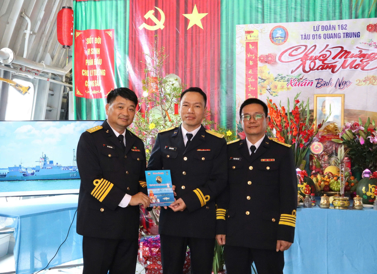 Nhân dịp Tết Nguyên đán Bính Ngọ 2026, thay mặt Đảng ủy, Bộ Tư lệnh Vùng 4 Hải quân, đồng chí Chính ủy Vùng đã ân cần thăm hỏi, tặng quà và gửi lời chúc năm mới tới toàn thể cán bộ, chiến sĩ Tàu 016 cùng gia đình lời chúc sức khỏe, hạnh phúc, an khang, thắng lợi mới.