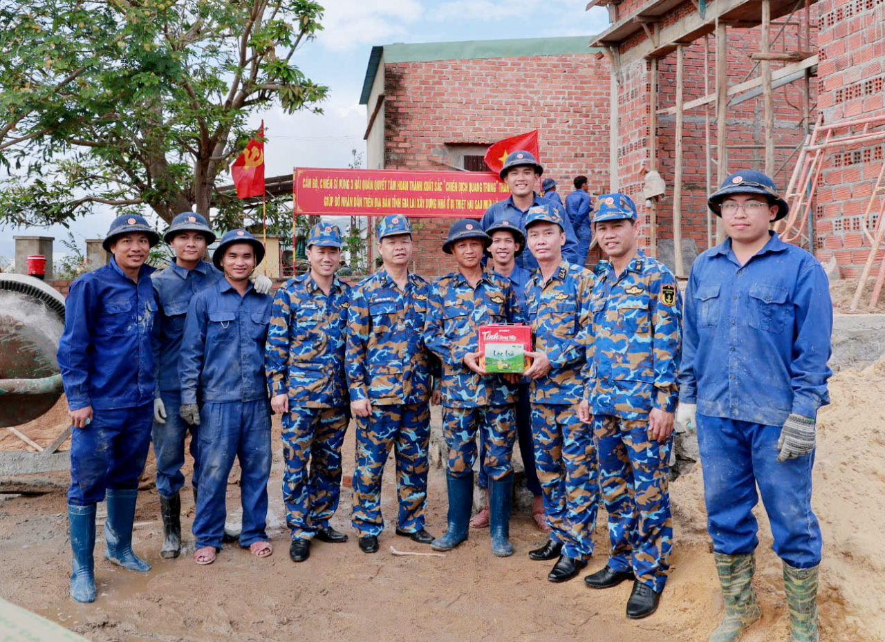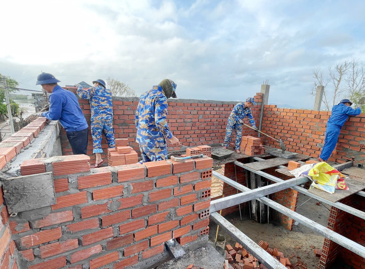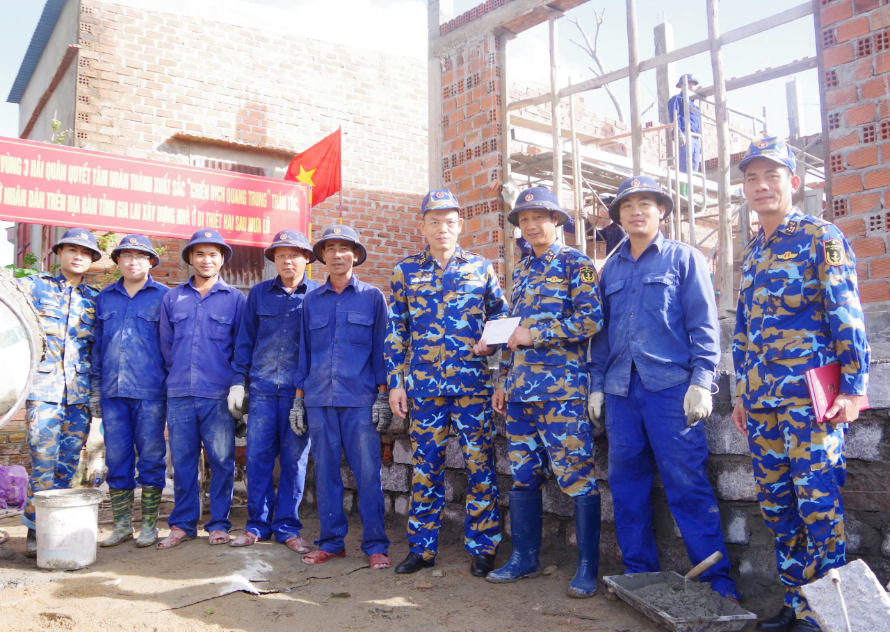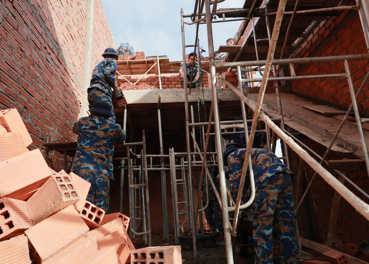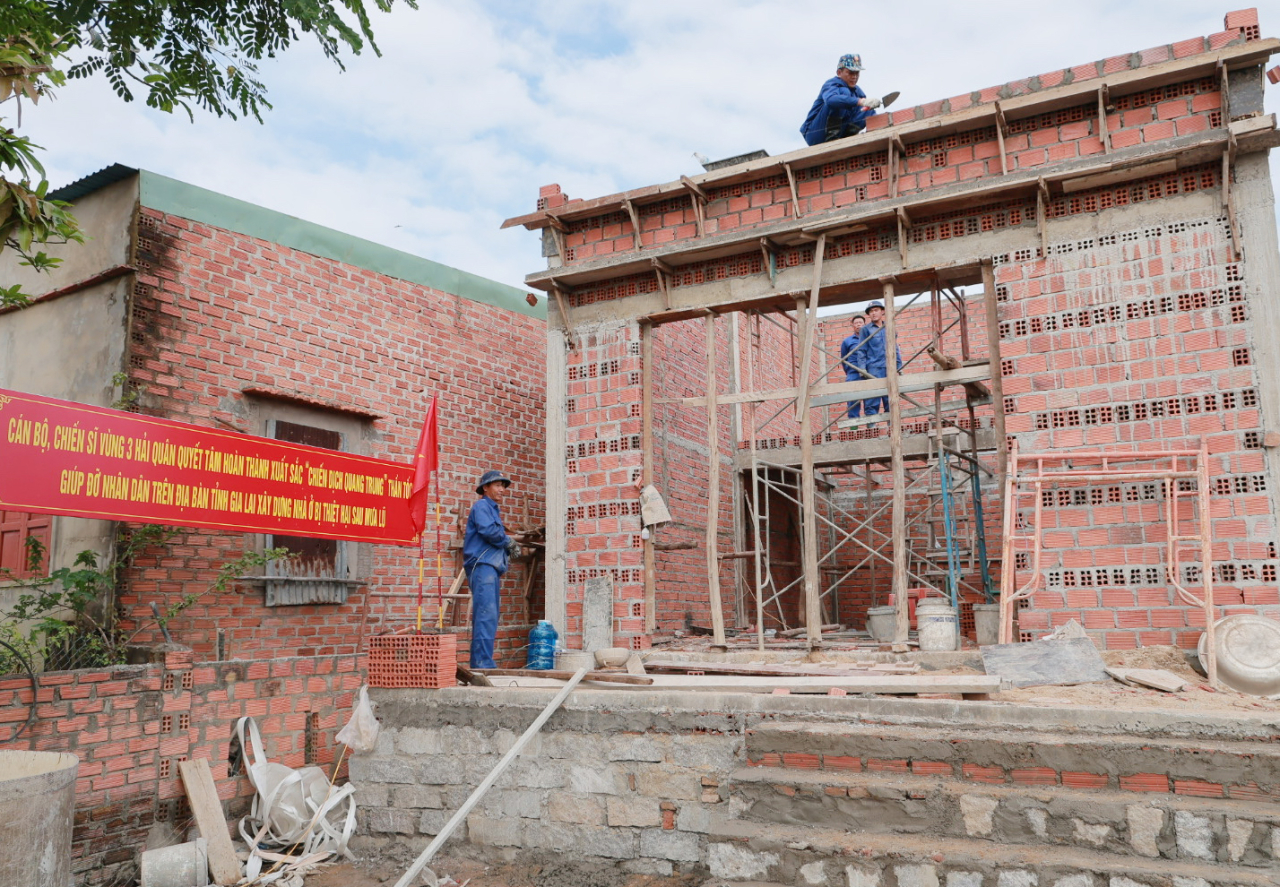 Gần 1 tháng qua, gần 120 cán bộ, chiến sĩ Vùng 3 đã không quản ngày đêm, tranh thủ từng phút thần tốc xây dựng lại nhà cửa cho bà con nhân dân bị thiệt hại nặng nề sau bão lũ. Tại xã Tuy Phước Đông, 6 căn nhà do các đội của Vùng 3 trực tiếp thi công đã cơ bản hoàn thành phần tường và sắp đổ mái.