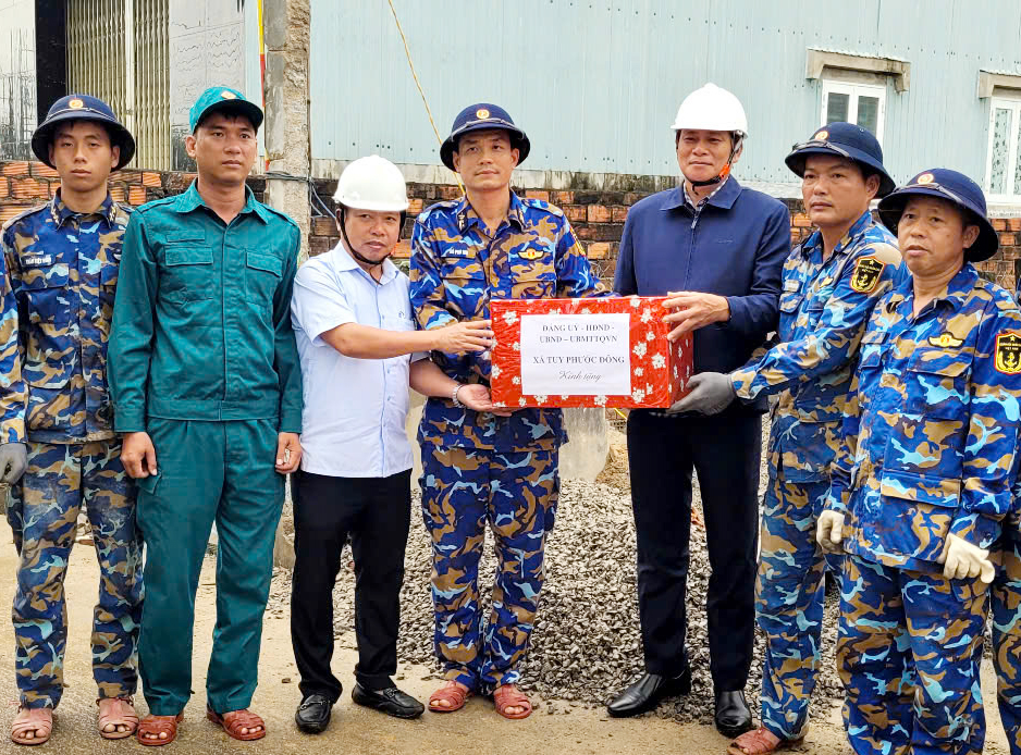 Nhân dịp này, đoàn công tác đã trao quà và biểu dương cán bộ, chiến sĩ các đội và đến thăm hỏi, tặng tặng quà các hộ gia đình có hoàn cảnh khó khăn bị thiệt hại do mưa lũ vừa qua trên địa bàn xã Tuy Phước Đông, tỉnh Gia Lai.