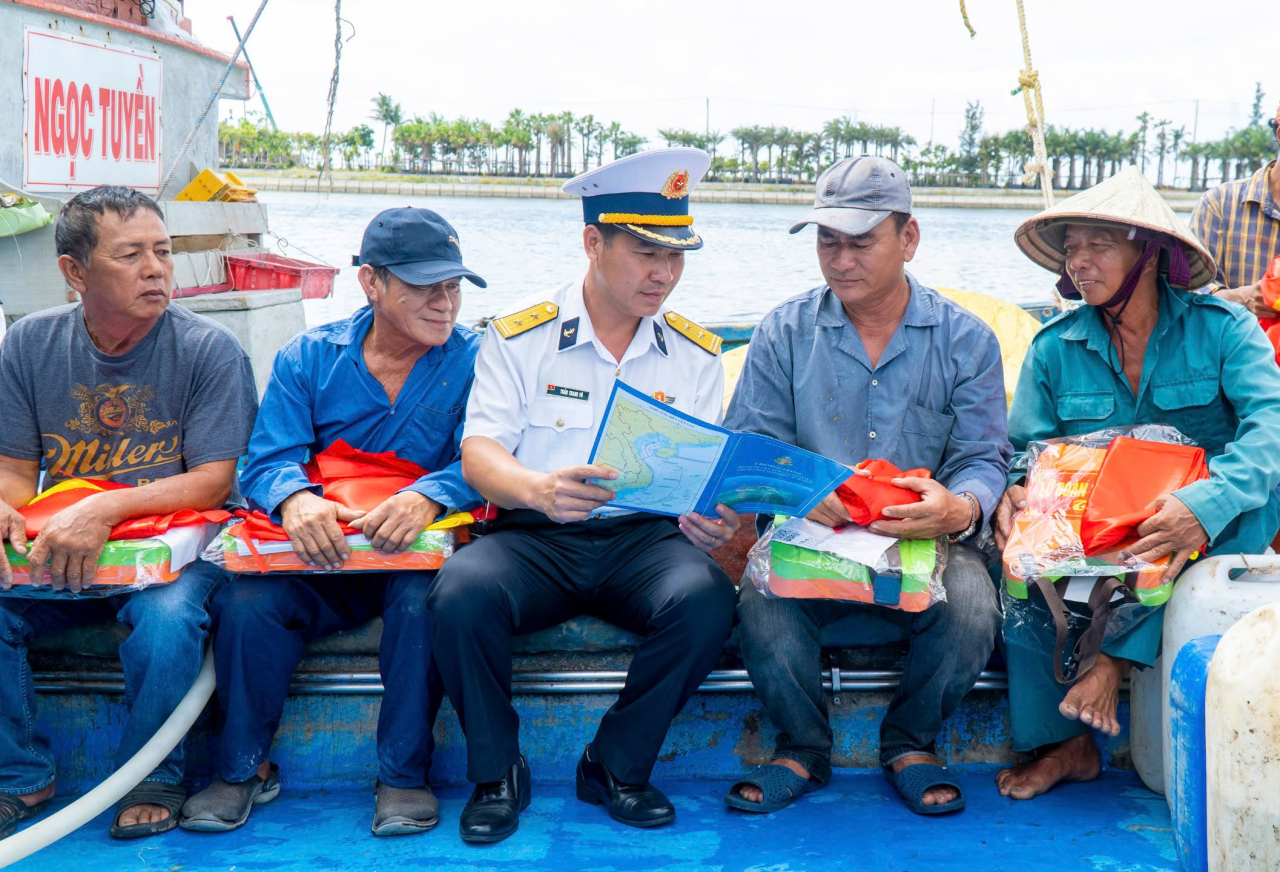 Cán bộ Lữ đoàn 171 tuyên truyền về pháp luật cho ngư dân
