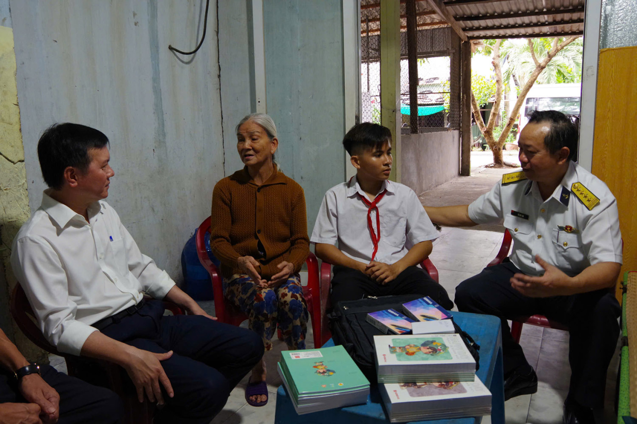 Đại tá Vũ Duy Lưu, Phó Chủ nhiệm Chính trị Vùng 2 tới thăm và động viên gia đình con đỡ đầu