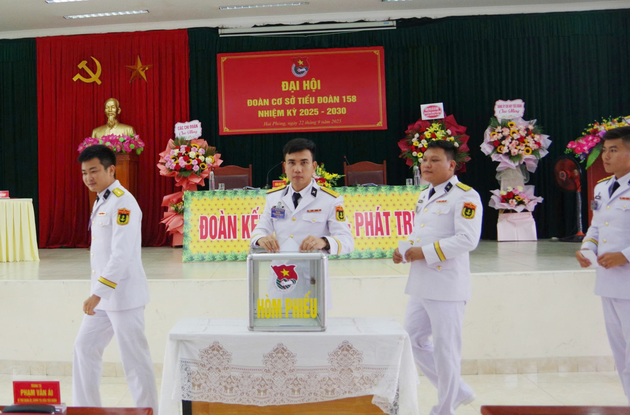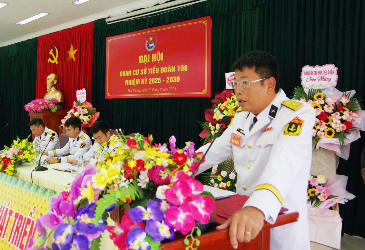 HQ Online - Sáng 22/9, tại phường Bạch Đằng, thành phố Hải Phòng, Đoàn cơ sở Tiểu đoàn 158, Vùng 1 Hải quân tổ chức Đại hội nhiệm kỳ 2025-2030. Trung tá Phạm Văn Ái, Bí thư Đảng ủy, Chính trị viên Tiểu đoàn dự và chỉ đạo.