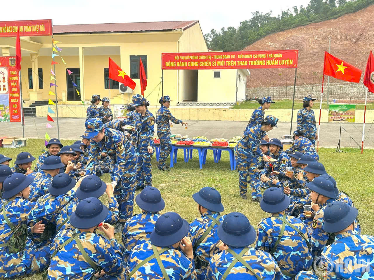Đồng hành với các chiến sĩ có cán bộ, hội viên Hội phụ nữ cơ sở Phòng Chính trị Vùng, tổ chức các hoạt động ý nghĩa như “Bát nước thao trường” góp phần nâng cao chất lượng đợt bắn tập.