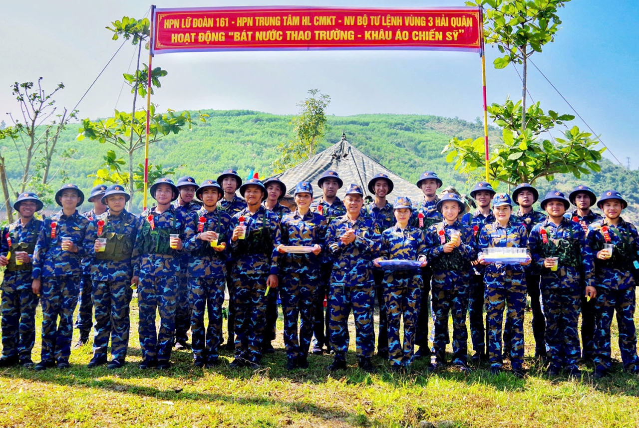Nhân dịp này, Hội Phụ nữ Lữ đoàn 161 phối hợp với hội phụ nữ Trung tâm Huấn luyện Chuyên môn kỹ thuật - Nghiệp vụ Vùng 3 tổ chức hoạt động “Bát nước thao trường”.