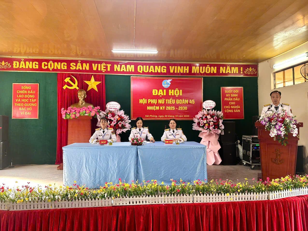 HQ Online - Chiều 20/10, tại Hải Phòng, Tiểu đoàn 45 (Cục Hậu cần-Kỹ thuật Hải quân) đã tổ chức thành công Đại hội Hội Phụ nữ nhiệm kỳ 2025 - 2030. Trung tá Vũ Mạnh Chuẩn, Bí thư Đảng ủy, Chính trị viên Tiểu đoàn dự và chỉ đạo.