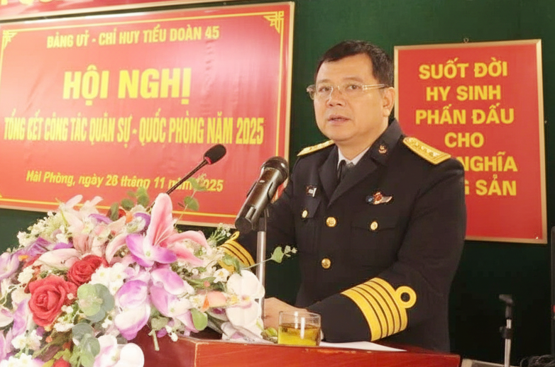 HQ Online - Sáng 28/11, tại Hải Phòng, Tiểu đoàn 45 (Cục Hậu cần-Kỹ thuật Hải quân) tổ chức Hội nghị quân sự-quốc phòng năm 2025. Đại tá Nguyễn Như Hải, Phó Chủ nhiệm Hậu cần-Kỹ thuật Hải quân dự và chỉ đạo.