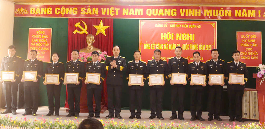 Dịp này, Tiểu đoàn 45 đã trao thưởng cho các tập thể, cá nhân hoàn thành xuất sắc nhiệm vụ năm 2025.