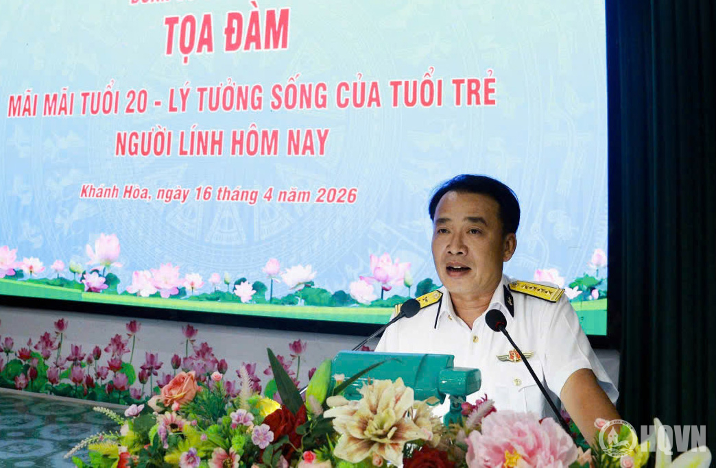 HQ Online - Tối 16/4, tại xã Cam Lâm (tỉnh Khánh Hòa), Đoàn cơ sở Lữ đoàn 101, Vùng 4 Hải quân tổ chức tọa đàm với chủ đề “Mãi mãi tuổi 20 – Lý tưởng sống của tuổi trẻ người lính hôm nay”. Đại tá Đỗ Hải Đăng, Phó Chính ủy Lữ đoàn, dự và chỉ đạo.