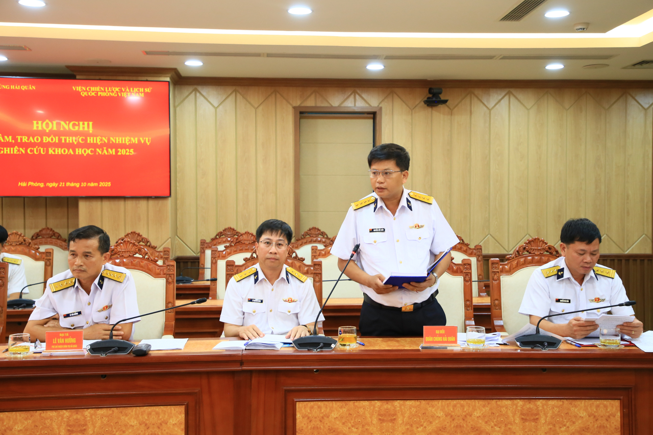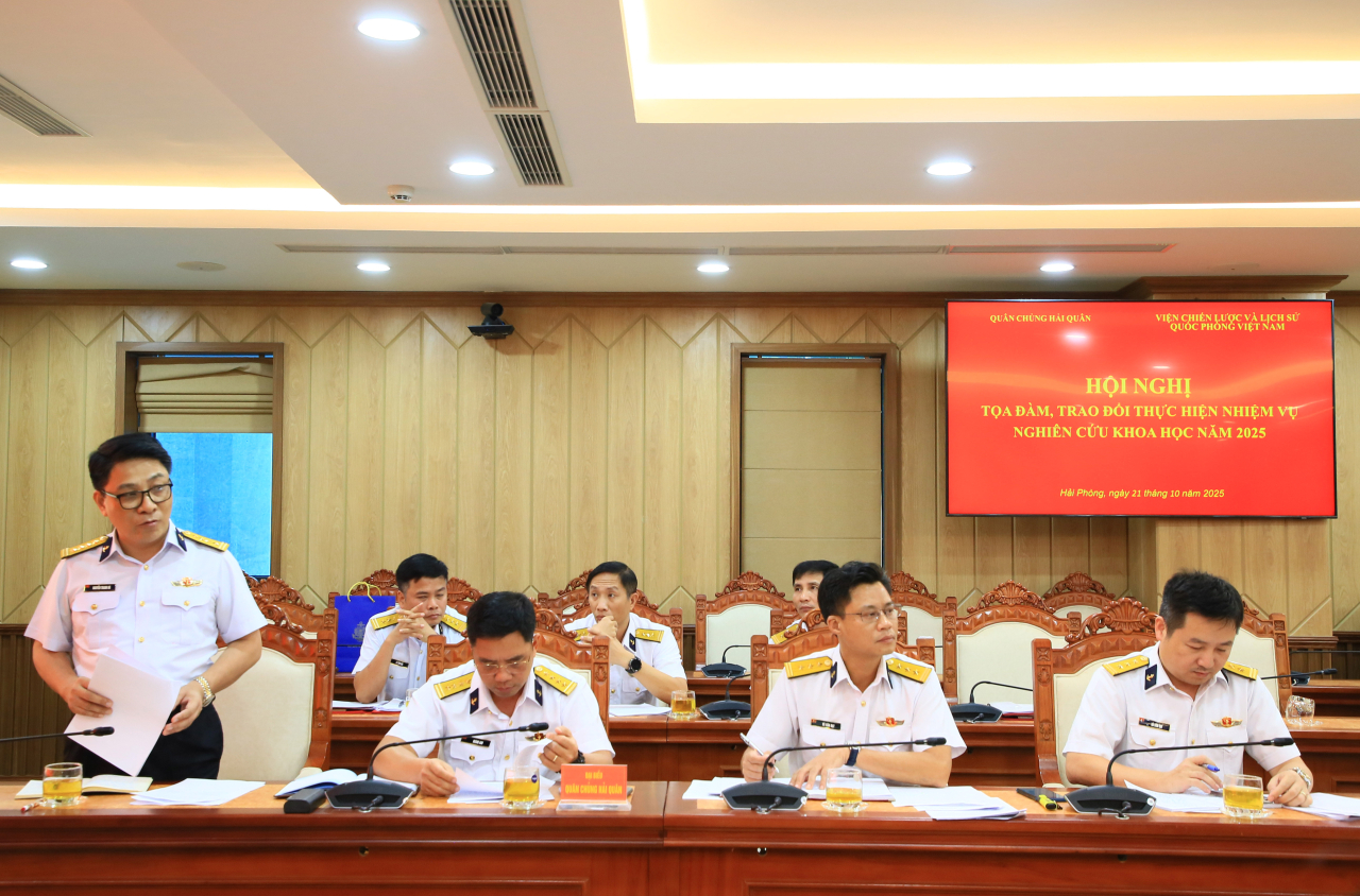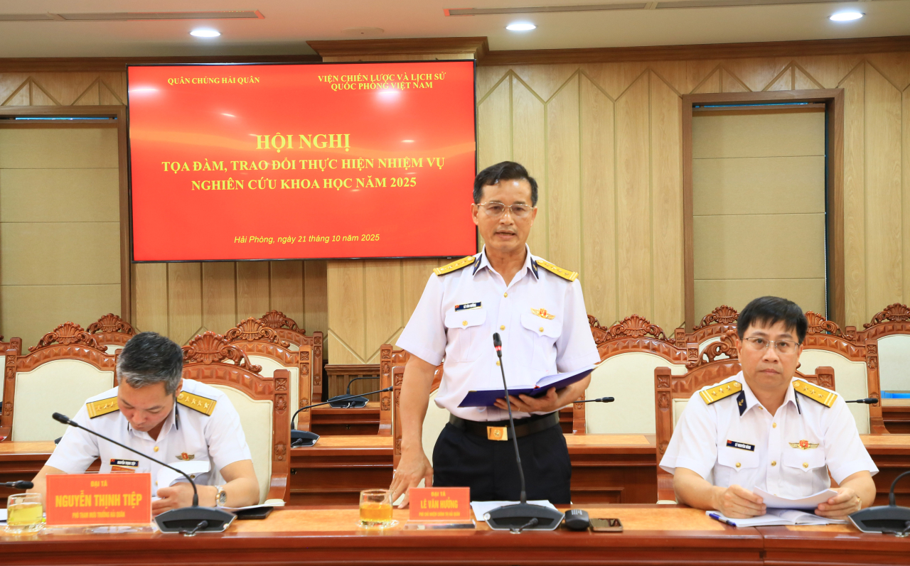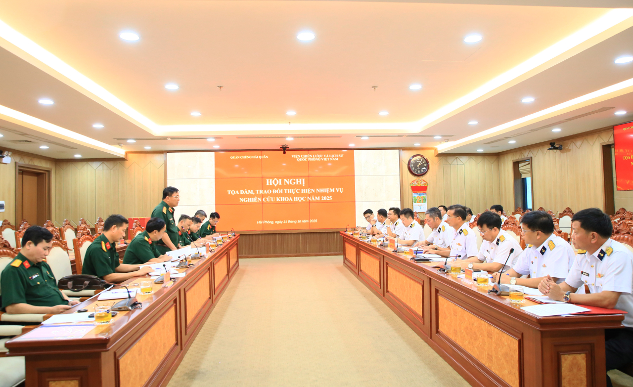 HQ Online - Chiều 21/10, tại Hải Phòng, Quân chủng Hải quân và Viện Chiến lược và Lịch sử Quốc phòng (VCL&LSQP) Việt Nam tổ chức Hội nghị tọa đàm, trao đổi thực hiện nhiệm vụ nghiên cứu khoa học năm 2025.
