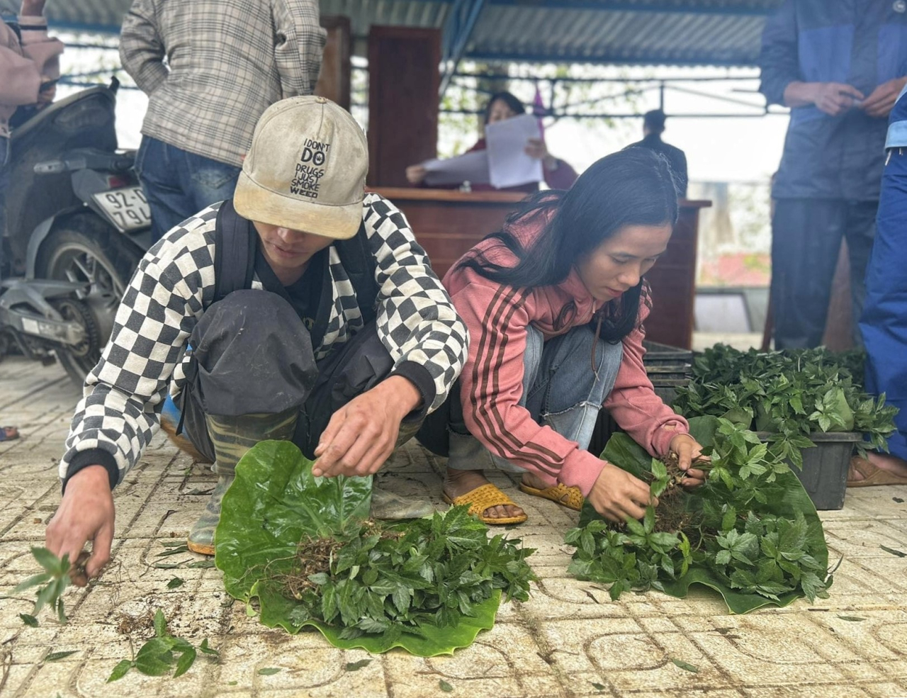 Bên cạnh ngân sách thành phố hỗ trợ, từ tháng 8/2025, UBND xã Trà Linh chủ động kêu gọi các doanh nghiệp, hộ trồng sâm, tổ chức, cá nhân chung tay hỗ trợ hạt giống, cây giống sâm Ngọc Linh để trao cho các hộ khó khăn có nhu cầu trồng sâm thoát nghèo.