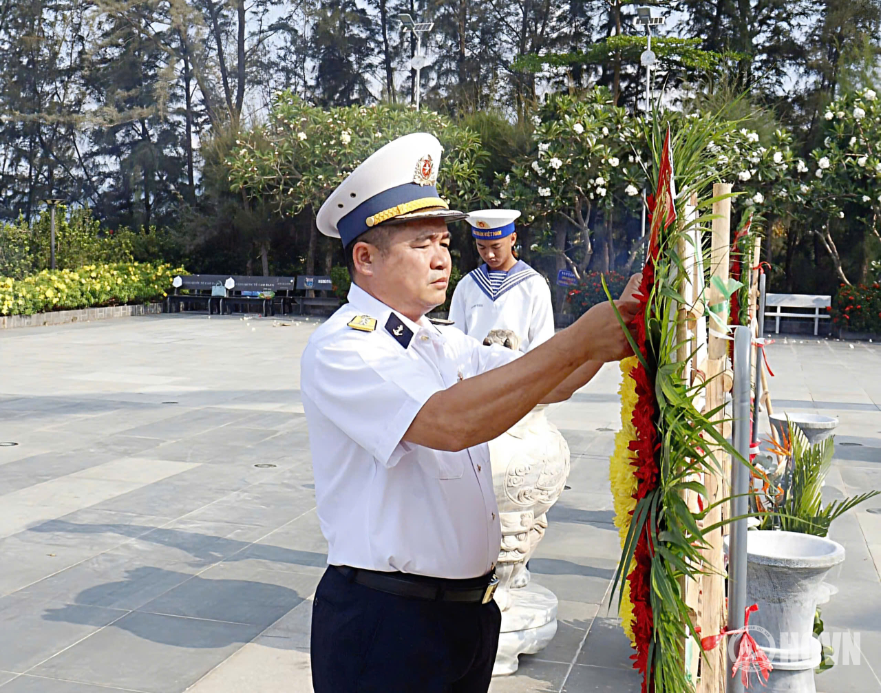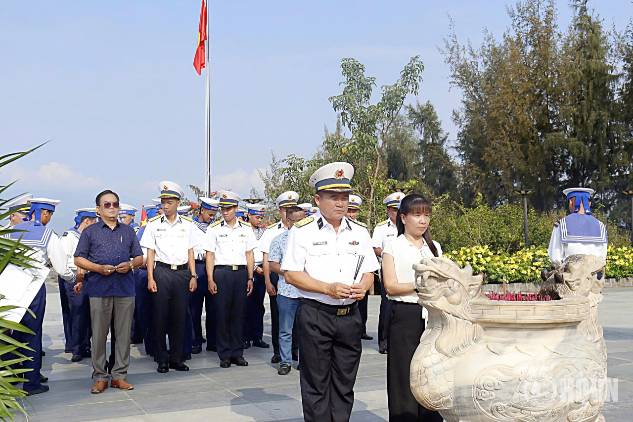 HQ Online - Hướng tới kỷ niệm 40 năm Ngày thành lập lực lượng tàu ngầm; 51 năm Ngày giải phóng miền Nam, thống nhất đất nước và 71 năm Ngày thành lập Hải quân nhân dân Việt Nam, sáng 27/4 Trung đoàn 196 Hải quân phối hợp với Trường Đại học Cửu Long tổ chức dâng hương, dâng hoa tưởng niệm, giáo dục truyền thống tại Khu tưởng niệm chiến sĩ Gạc Ma.