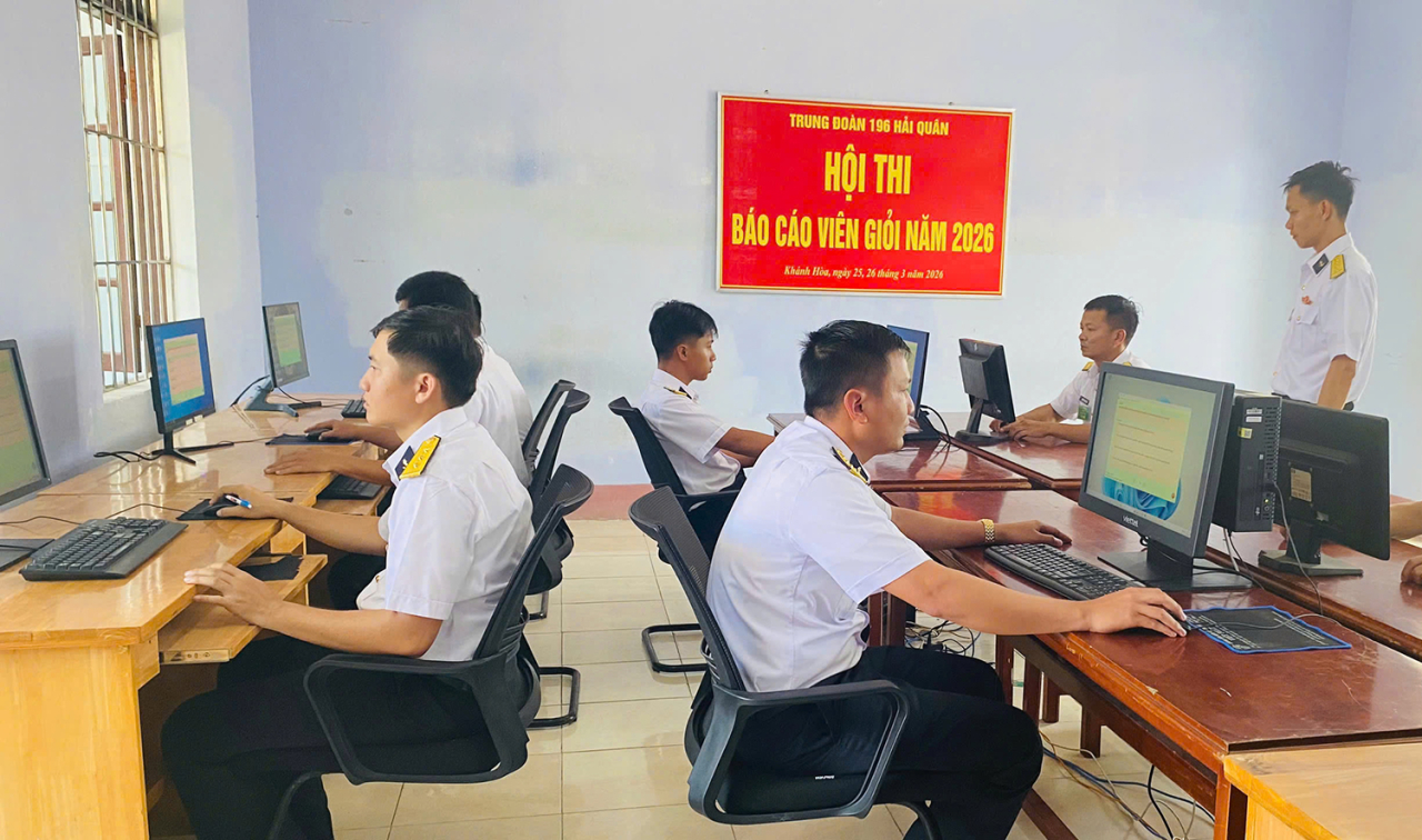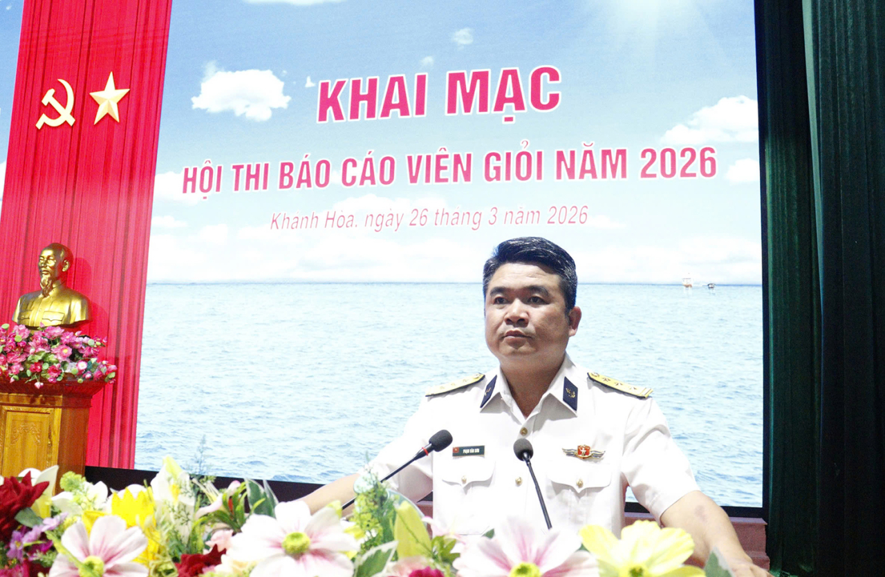 HQ Online - Sáng 26/3, tại phường Bắc Cam Ranh (tỉnh Khánh Hoà), Trung đoàn 196 Hải quân tổ chức khai mạc Hội thi báo cáo viên giỏi năm 2026. Thượng tá Phạm Văn Sơn, Bí thư Đảng uỷ, Chính uỷ Trung đoàn dự và chủ trì.