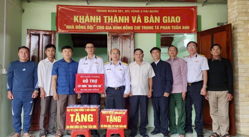 HQ Online - Sáng 30/10, tại xã Quảng Châu, tỉnh Nghệ An, Trung đoàn 251, Vùng 2 Hải quân tổ chức Lễ khánh thành và bàn giao nhà đồng đội tặng gia đình Trung tá Phan Tuấn Anh, Trợ lý Chính trị Trung đoàn. Đại tá Lê Viết Hào, Chính ủy Trung đoàn 251 dự và chủ trì buổi bàn giao nhà.