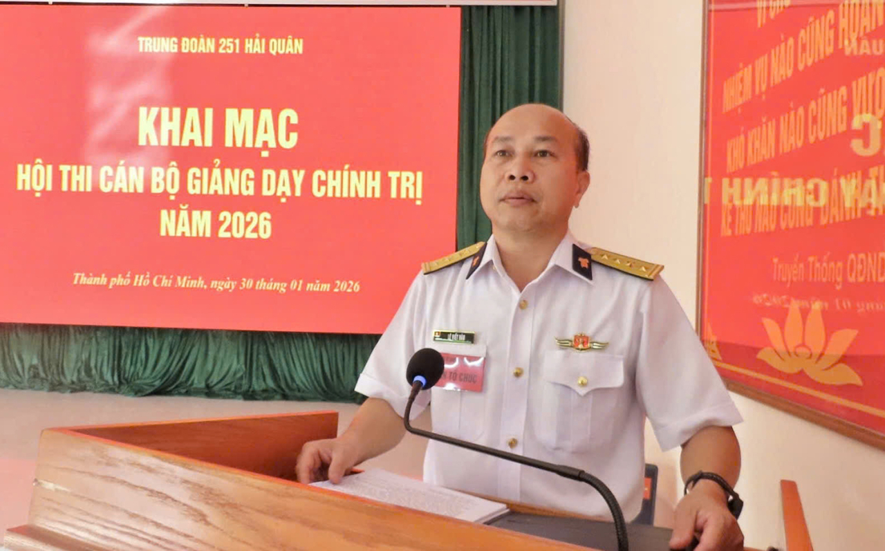 HQ Online - Ngày 30/1/, tại P. Vũng Tàu (TP Hồ Chí Minh), Trung đoàn 251, Vùng 2 Hải quân tổ chức Hội thi cán bộ giảng dạy chính trị năm 2026. Đại tá Lê Viết Hào, Bí thư Đảng ủy, Chính ủy Trung đoàn chủ trì.