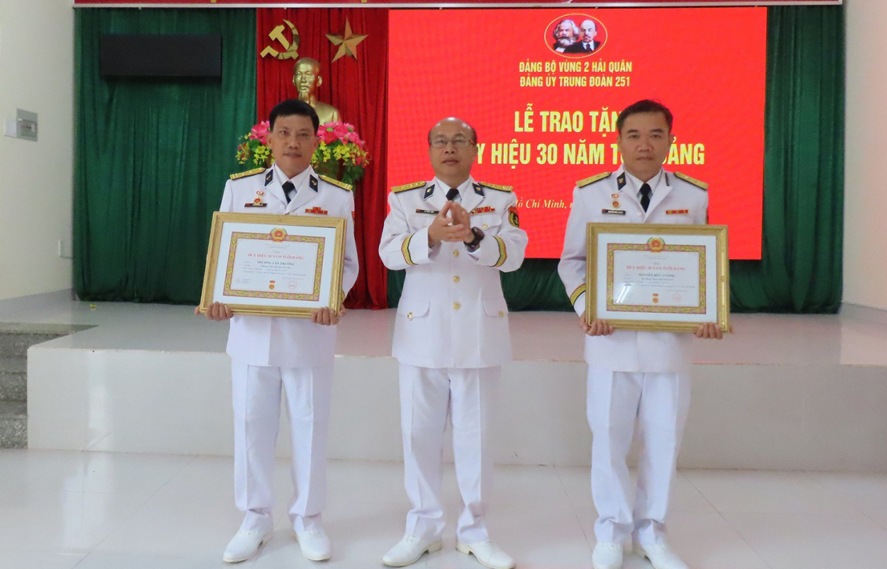 *Cũng dịp này Đảng ủy Trung đoàn 251 tổ chức Lễ trao Huy hiệu 30 năm tuổi Đảng cho đồng chí Trung tá QNCN Trương Văn Trường, đảng viên Chi bộ Ban Tham mưu và đồng chí Trung tá QNCN Nguyễn Đức Cương, đảng viên Chi bộ Ban Hậu cần-Kỹ thuật.