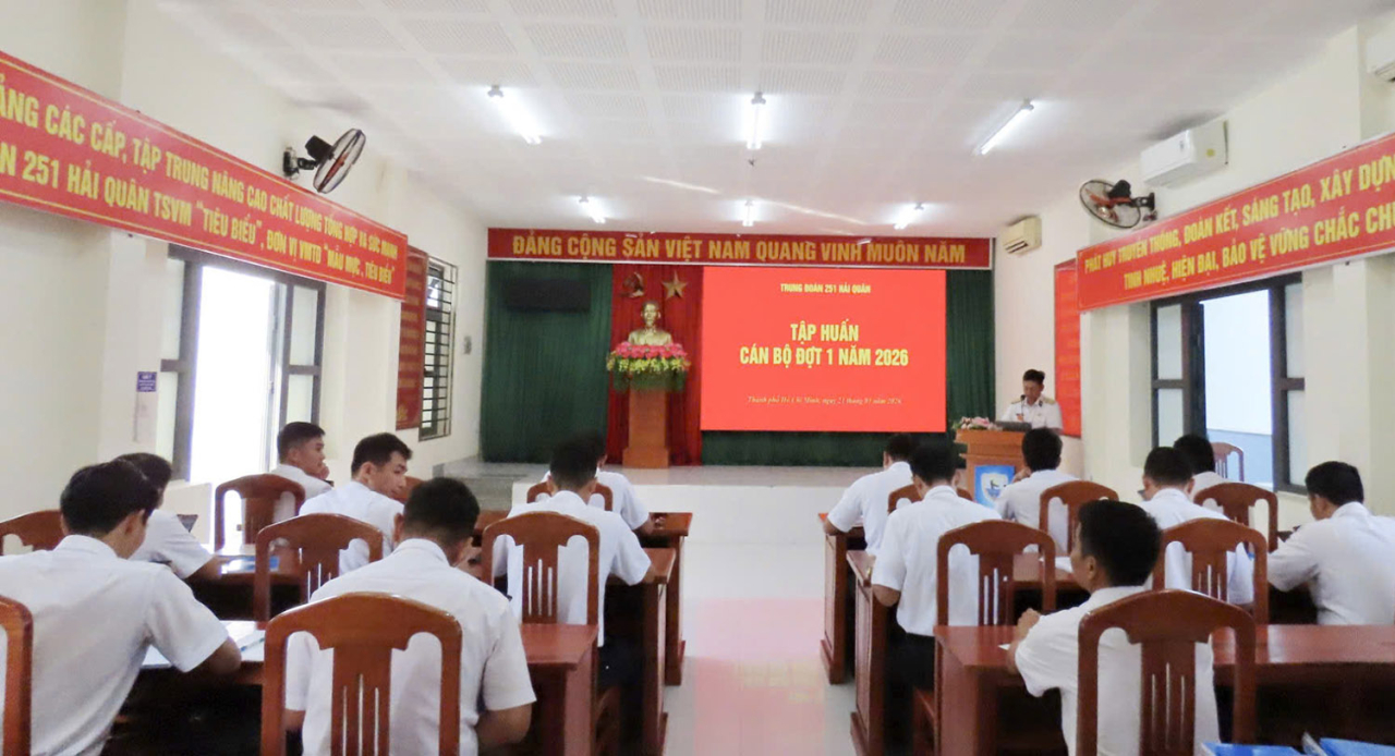 HQ Online - Trong hai ngày 21 và 22/1, tại P. Vũng Tàu (TP. Hồ Chí Minh), Trung đoàn 251 (Vùng 2 Hải quân) tổ chức lớp tập huấn cán bộ đợt 1 năm 2026. Tham gia lớp tập huấn có đội ngũ sĩ quan, quân nhân chuyên nghiệp trong toàn Trung đoàn.